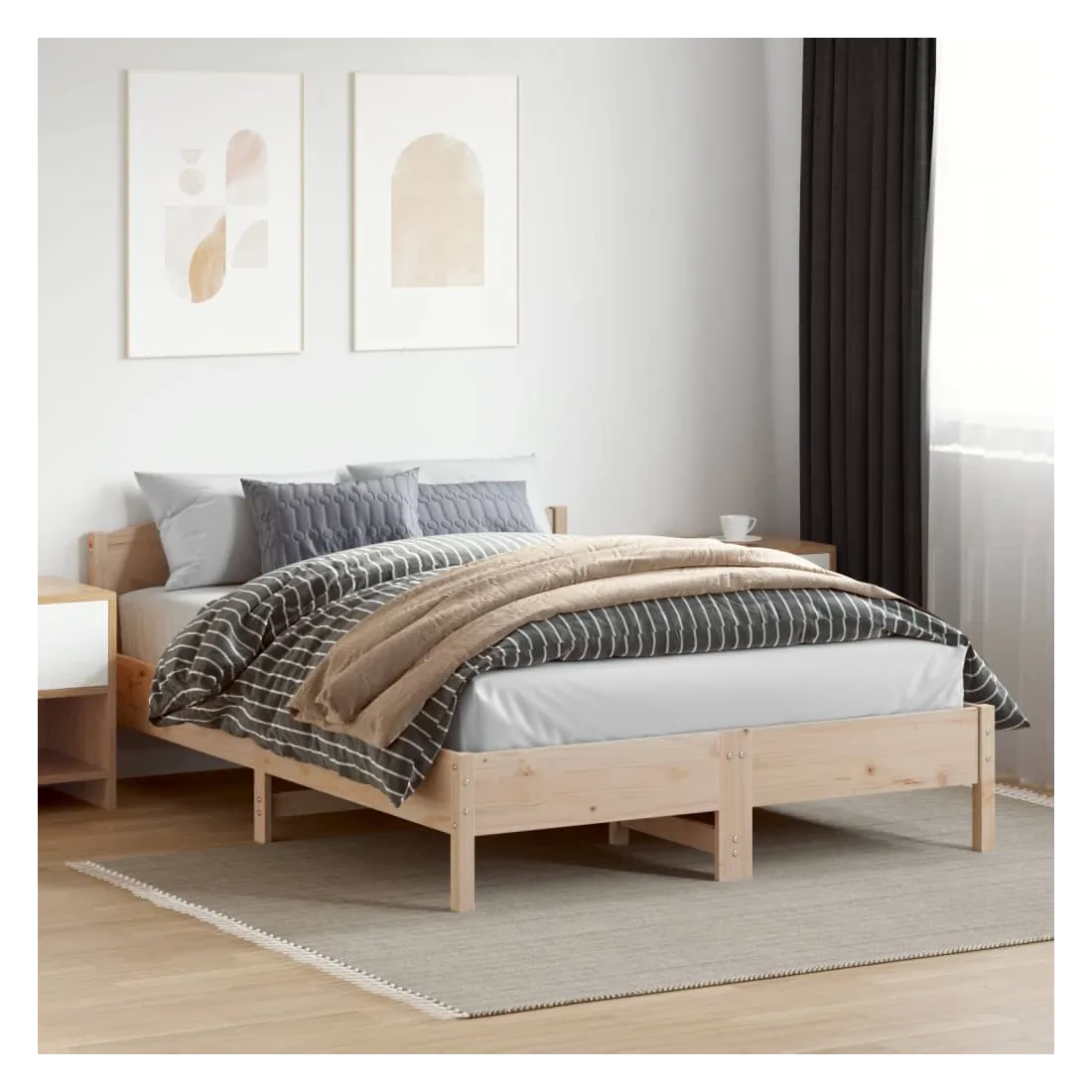 Profitez d'une bonne nuit de sommeil dans ce cadre de lit en bois ! Il sera un supplément pratique et décoratif à votre intérieur. Bois de pin massif : le bois de pin massif est un matériau naturel magnifique. Le bois de pin a un grain droit et les nœuds donnent au matériau son aspect caractéristique et rustique.Lattes de contreplaqué : les lattes de contreplaqué assurent une bonne répartition du poids, garantissant que le matelas reste en place à chaque torsion de votre corps pendant le sommeil.Excellent soutien : la tête de lit en bois offre un excellent soutien du dos lorsque vous vous asseyez sur votre lit pour lire ou regarder la télévision. Bon à savoir :Un matelas n'est pas inclus avec ce lit. Nous offrons une sélection variée de matelas. Vous pouvez consulter notre boutique pour trouver un matelas assorti.