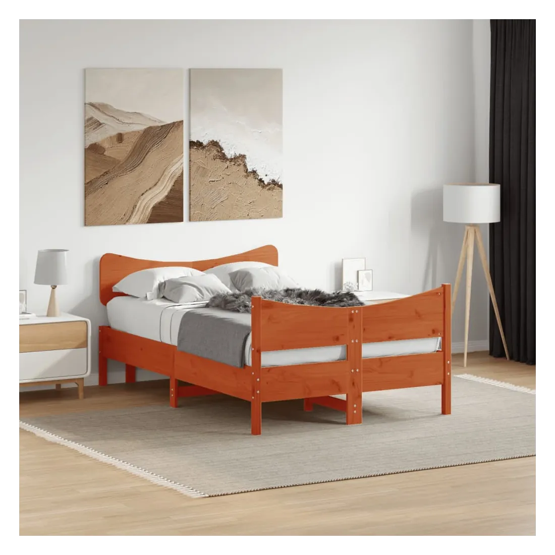 Profitez d'une bonne nuit de sommeil dans ce cadre de lit en bois ! Il sera un supplément pratique et décoratif à votre intérieur. Bois de pin massif : le bois de pin massif est un matériau naturel magnifique. Le bois de pin a un grain droit et les nœuds donnent au matériau son aspect caractéristique et rustique.Lattes en contreplaqué : les lattes en contreplaqué assurent une bonne répartition du poids, garantissant à votre matelas le soutien et la respirabilité dont il a tant besoin.Tête de lit et pied de lit fonctionnels : la tête et le pied de lit du lit en bois peuvent maintenir votre matelas en place. De plus, la tête de lit vous offre un excellent soutien du dos lorsque vous vous asseyez dans le lit pour lire ou regarder la télévision. Bon à savoir :Un matelas n'est pas inclus avec ce lit. Nous offrons une sélection variée de matelas. Vous pouvez consulter notre boutique pour trouver un matelas assorti.