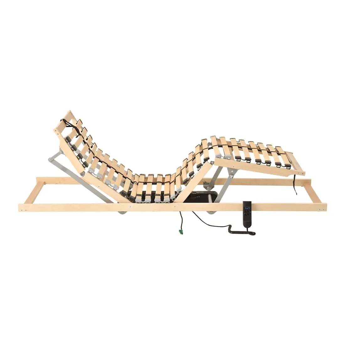 Ce sommier à lattes électrique confortable vous fera aimer encore davantage votre lit ! Avec un cadre en hêtre massif et des lattes en bouleau, le sommier est robuste et durable. Les 7 zones de confort offrent un soutien optimal à votre corps. Les deux extrémités des lattes sont maintenues en place par des capuchons en caoutchouc SBS pour une meilleure stabilité de l'ensemble de la structure. Grâce aux 4 lattes doubles réglables dans la zone centrale, la fermeté de la base peut être ajustée en fonction de vos besoins. Avec une commande manuelle, les zones de la tête et des pieds sont réglables pour votre confort. Veuillez noter que la livraison comprend uniquement une base de lit à lattes ; un matelas et un cadre de lit ne sont pas inclus. Bon à savoir : l'assemblage est requis en raison des restrictions d'expédition limitant la taille du paquet à un maximum de 120 cm.