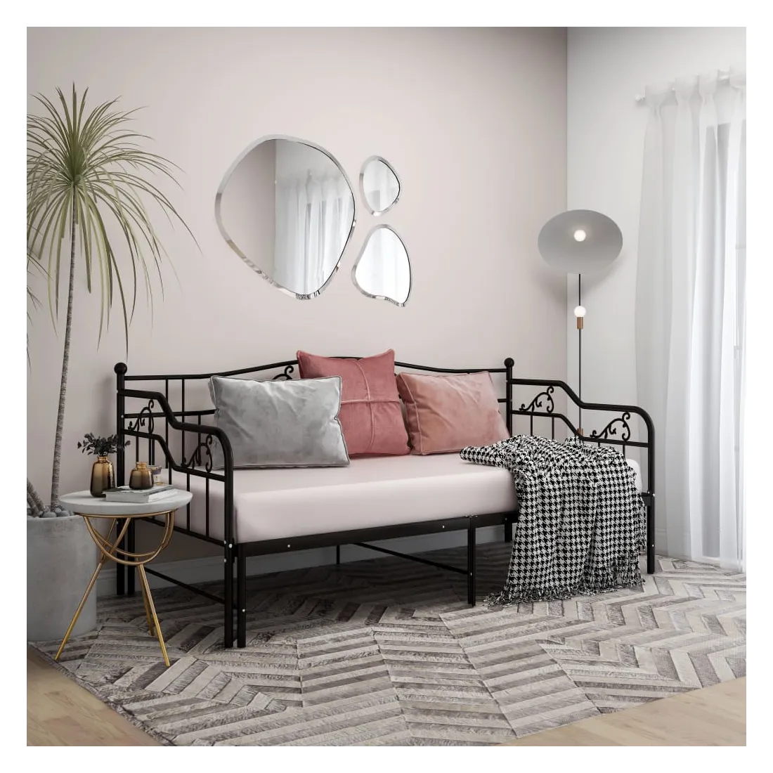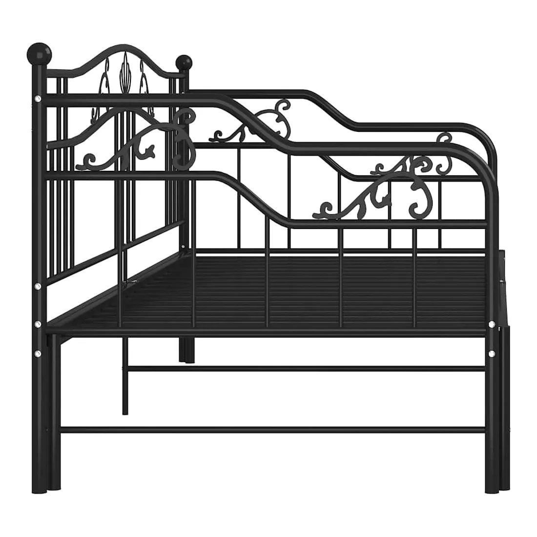 Ce canapé-lit polyvalent sera parfait pour accueillir des invités inattendus pour la nuit, tout en offrant un espace de siège confortable pendant la journée. Vous pouvez facilement convertir ce meuble en un canapé pendant la journée et en un lit confortable la nuit. Le cadre du lit de jour maximise l’espace disponible au sol tout en offrant un espace de couchage pour deux personnes, ce qui en fait un choix idéal pour les personnes ayant un espace de vie limité. De plus, le lit de nuit est équipé d’une balustrade latérale qui empêche l’utilisateur de rouler tout en dormant. Le cadre de lit entier a une construction métallique robuste, ce qui le rend très durable, et adapté pour une utilisation quotidienne. Veuillez noter que la livraison comprend le cadre de lit uniquement. Les matelas ne sont pas inclus. Vous pouvez consulter notre boutique pour les matelas assortis.