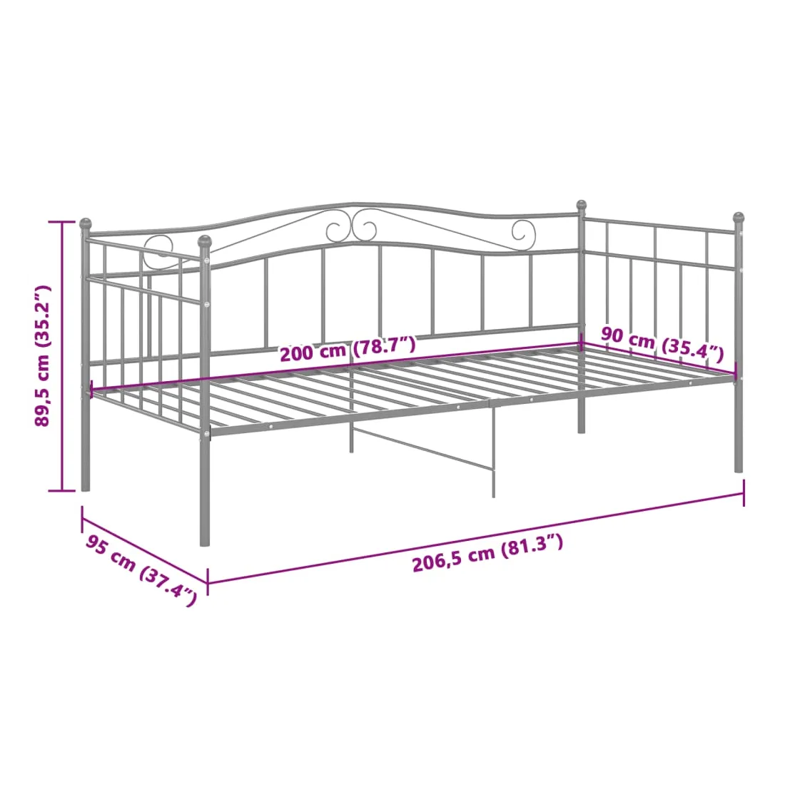 Ce canapé-lit élégant est censé être une solution parfaite pour accueillir des invités inattendus pendant la nuit tout en offrant un espace confortable pendant la journée. Vous pouvez facilement convertir ce meuble en un canapé pendant la journée et en un lit confortable la nuit. Le cadre du lit de jour maximise l’espace disponible au sol tout en offrant un espace de couchage, ce qui en fait un choix idéal pour les personnes ayant un espace de vie limité. L'ensemble de cadre de lit est de construction métallique robuste, ce qui le rend très durable et adapté à une utilisation quotidienne. Veuillez noter que la livraison comprend le cadre de lit uniquement. Les matelas ne sont pas inclus. Vous pouvez consulter notre boutique pour les matelas assortis.