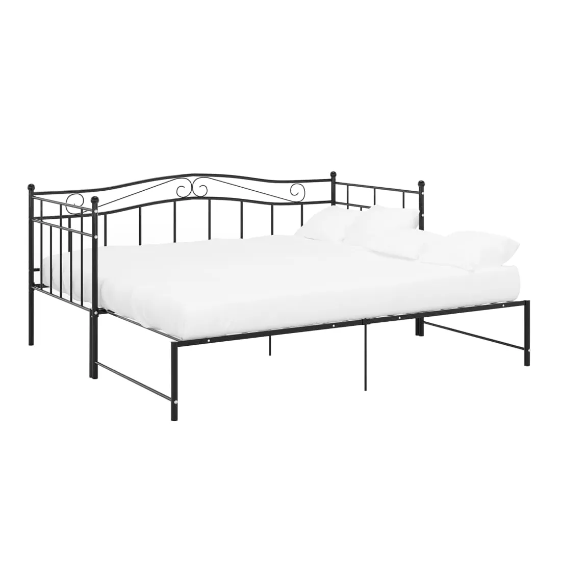 Ce canapé-lit polyvalent sera parfait pour accueillir des invités inattendus pour la nuit, tout en offrant un espace de siège confortable pendant la journée. Vous pouvez facilement convertir ce meuble en un canapé pendant la journée et en un lit confortable la nuit. Le cadre du lit de jour maximise l’espace disponible au sol tout en offrant un espace de couchage pour deux personnes, ce qui en fait un choix idéal pour les personnes ayant un espace de vie limité. De plus, le lit de nuit est équipé d’une balustrade latérale qui empêche l’utilisateur de rouler tout en dormant. Le cadre de lit entier a une construction métallique robuste, ce qui le rend très durable, et adapté pour une utilisation quotidienne. Veuillez noter que la livraison comprend le cadre de lit uniquement. Les matelas ne sont pas inclus. Vous pouvez consulter notre boutique pour les matelas assortis.
