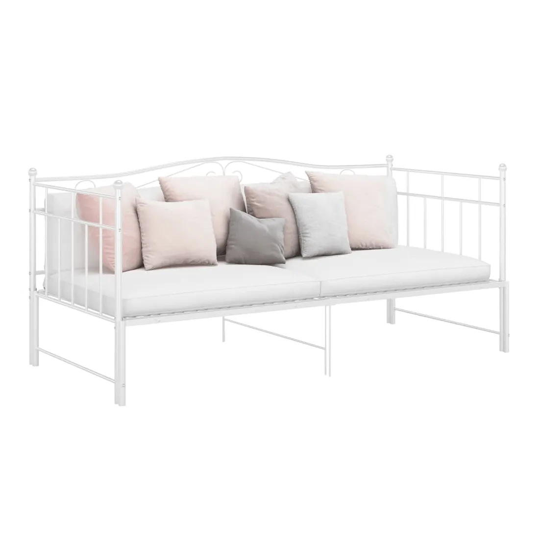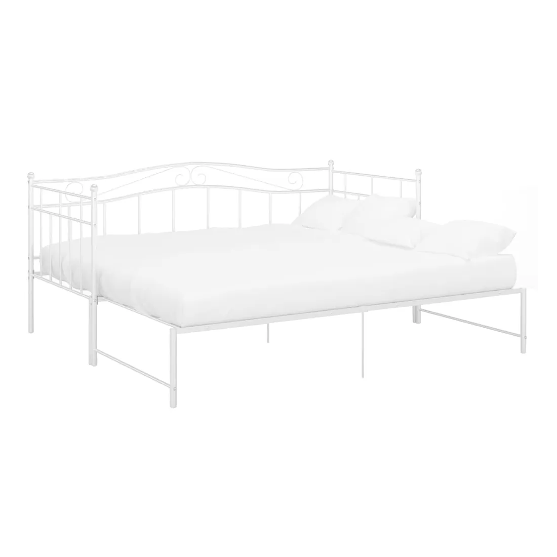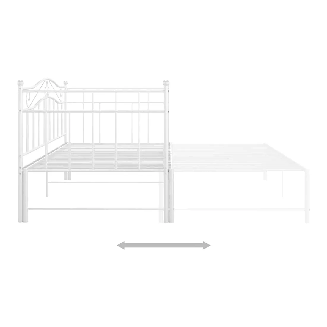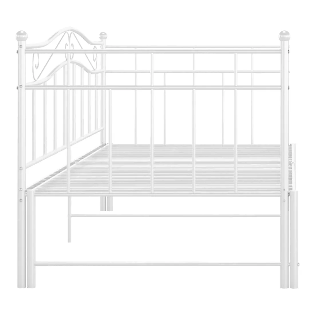 Ce canapé-lit polyvalent sera parfait pour accueillir des invités inattendus pour la nuit, tout en offrant un espace de siège confortable pendant la journée. Vous pouvez facilement convertir ce meuble en un canapé pendant la journée et en un lit confortable la nuit. Le cadre du lit de jour maximise l’espace disponible au sol tout en offrant un espace de couchage pour deux personnes, ce qui en fait un choix idéal pour les personnes ayant un espace de vie limité. De plus, le lit de nuit est équipé d’une balustrade latérale qui empêche l’utilisateur de rouler tout en dormant. Le cadre de lit entier a une construction métallique robuste, ce qui le rend très durable, et adapté pour une utilisation quotidienne. Veuillez noter que la livraison comprend le cadre de lit uniquement. Les matelas ne sont pas inclus. Vous pouvez consulter notre boutique pour les matelas assortis.