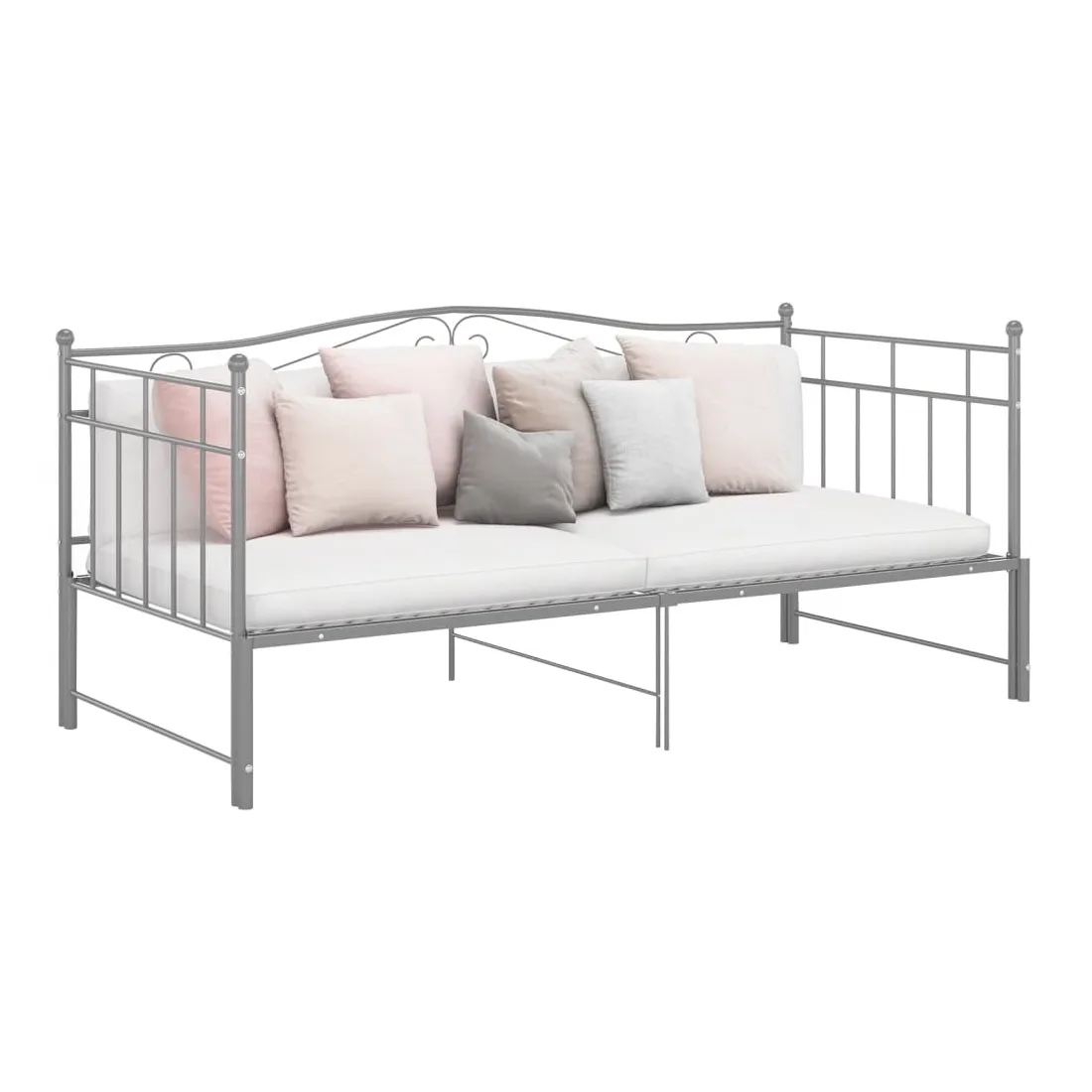 Cadre de canapé-lit extensible sans matelas gris métal 90x200cm