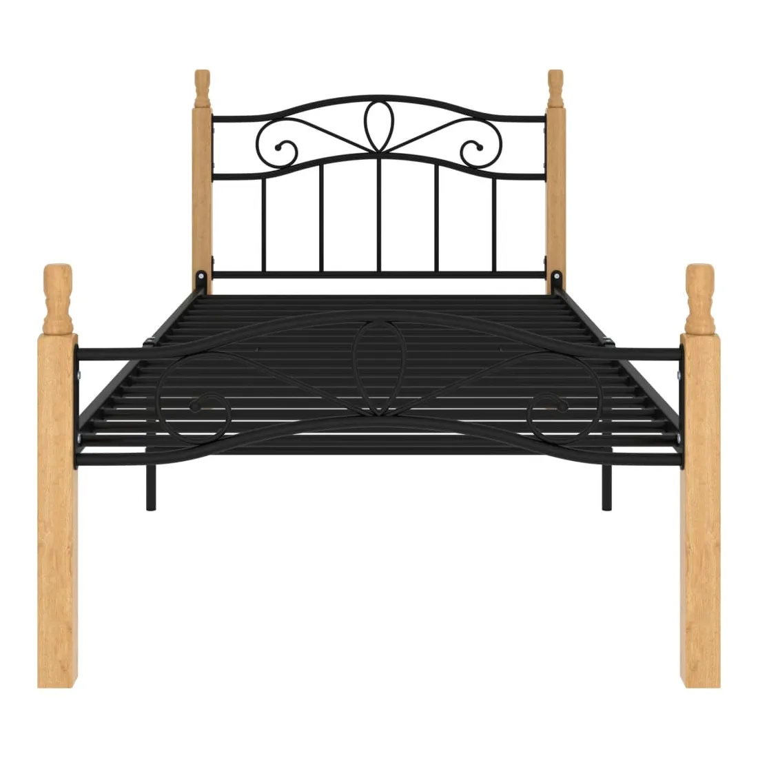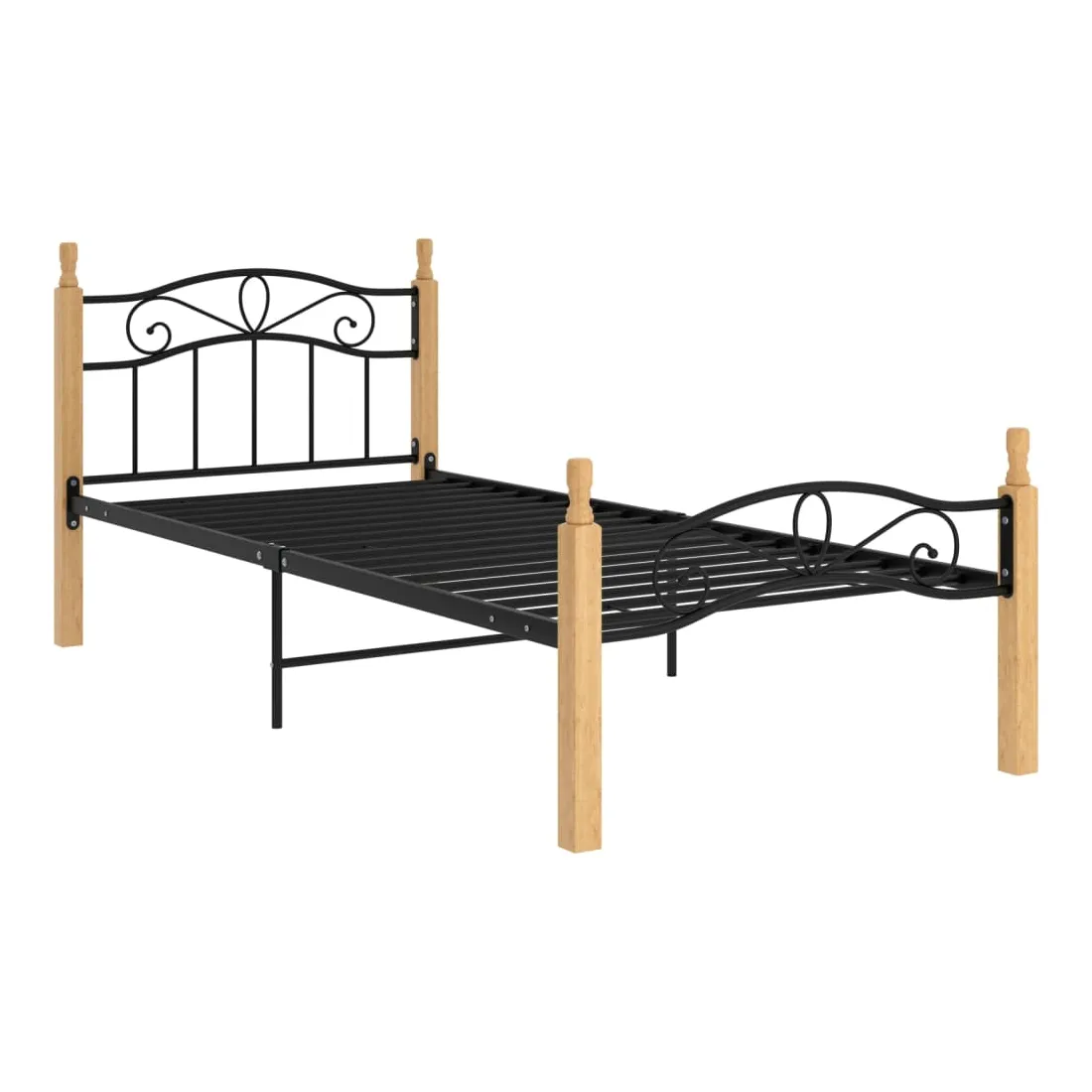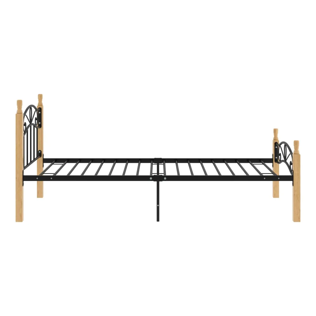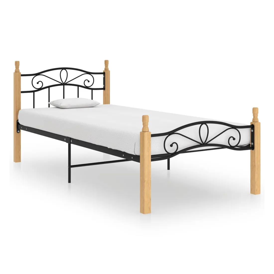 Cadre de lit sans matelas noir métal bois chêne 100x200 cm