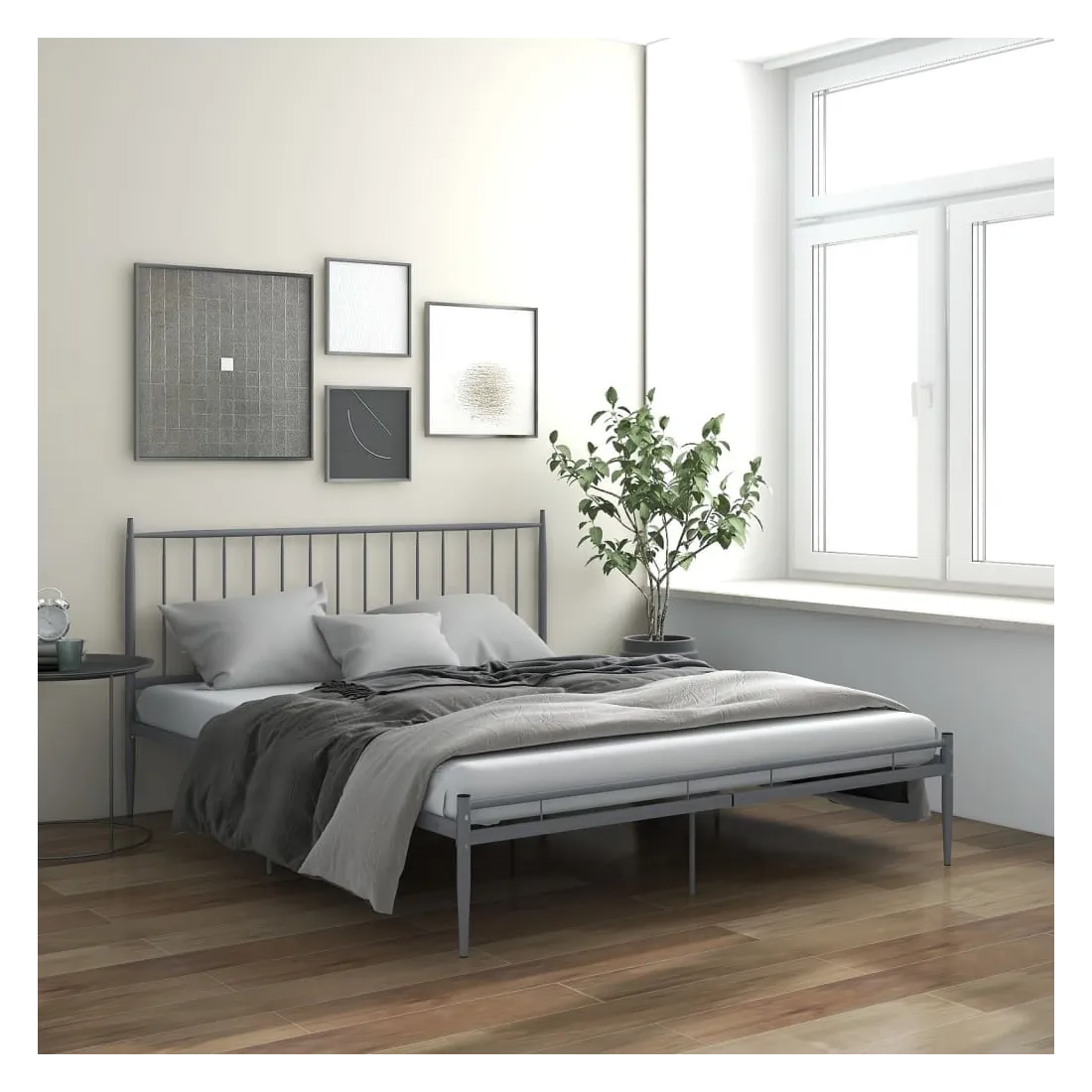 Cadre de lit sans matelas gris métal 200x200 cm