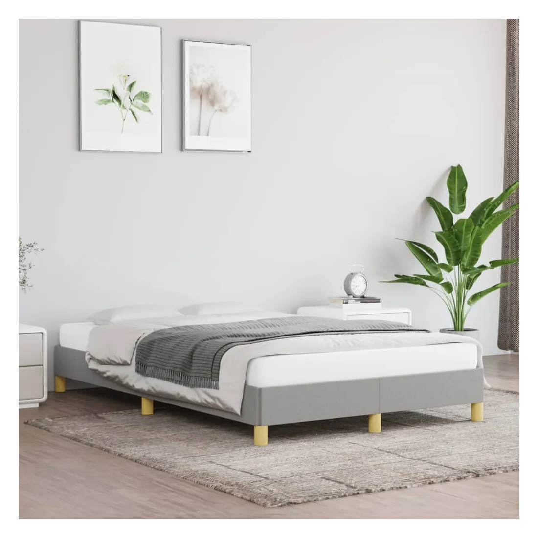 Obtenez une meilleure nuit de sommeil reposante grâce à ce cadre de lit ! Il est un supplément accueillant à toute chambre à coucher. Tissu durable : le tissu présente un aspect simple et épuré, et il est respirant et durable.Pieds de soutien : le lit est soutenu par des pieds robustes, qui assurent sa stabilité, sa sécurité et sa fermeté.Lattes de contreplaqué : les lattes de contreplaqué assurent une bonne répartition du poids, garantissant que le matelas reste en place à chaque torsion de votre corps pendant le sommeil. Bon à savoir :La livraison comprend uniquement un cadre de lit. Le matelas n'est pas inclus. Vous pouvez consulter notre boutique pour trouver les matelas assortis.