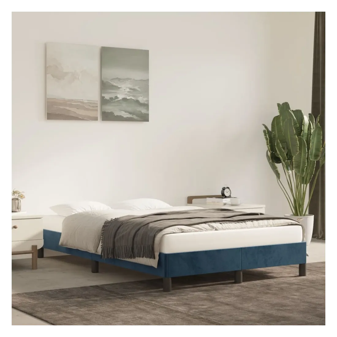 Obtenez une meilleure nuit de sommeil reposante grâce à ce cadre de lit ! Il est un supplément accueillant à toute chambre à coucher. Velours doux : le velours est un tissu doux et luxueux qui se reconnaît à son tas dense de fibres uniformément coupées qui ont une touche lisse. Le tissu en velours présente un toucher doux distinctif, ce qui le rend confortable au toucher.Pieds de soutien : le lit est soutenu par des pieds robustes, qui assurent sa stabilité, sa sécurité et sa fermeté.Lattes de contreplaqué : les lattes de contreplaqué assurent une bonne répartition du poids, garantissant que le matelas reste en place à chaque torsion de votre corps pendant le sommeil. Bon à savoir :La livraison comprend uniquement un cadre de lit. Le matelas n'est pas inclus. Vous pouvez consulter notre boutique pour trouver les matelas assortis.