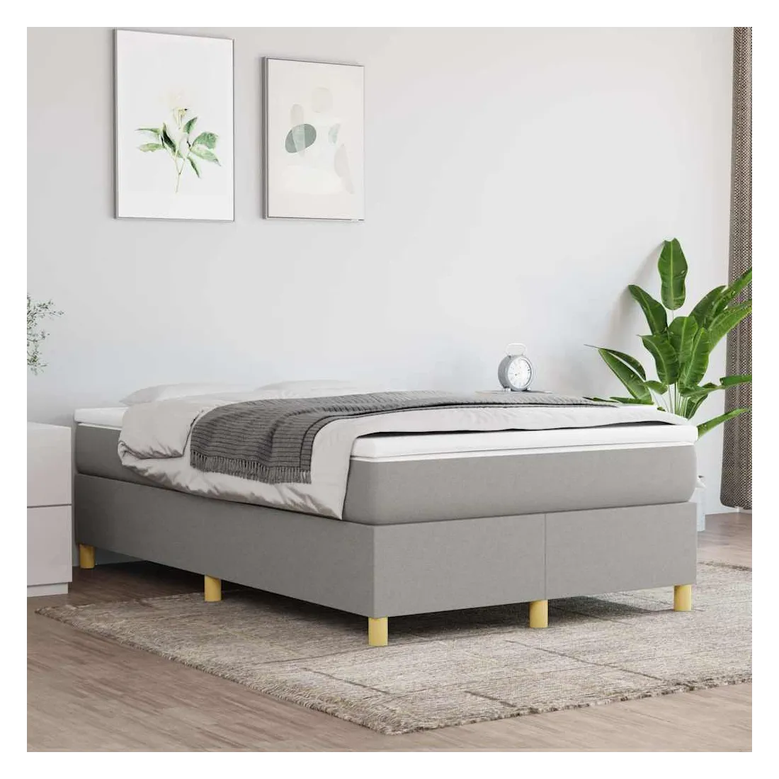 Sommier à lattes de lit et matelas gris clair 120x190 cm tissu