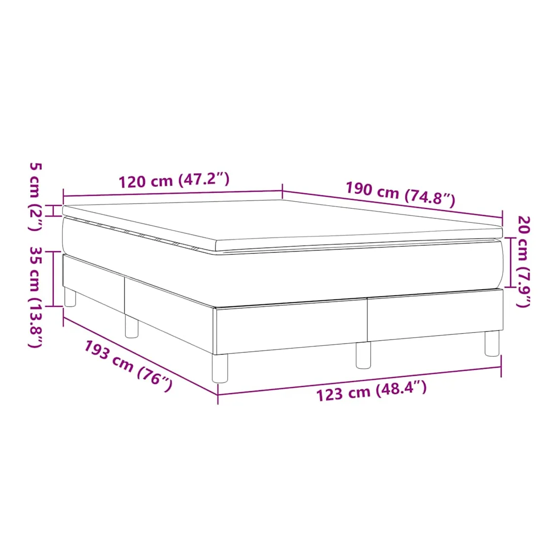 - Dimensions : 120 x 190 x 20 cm (l x L x H)