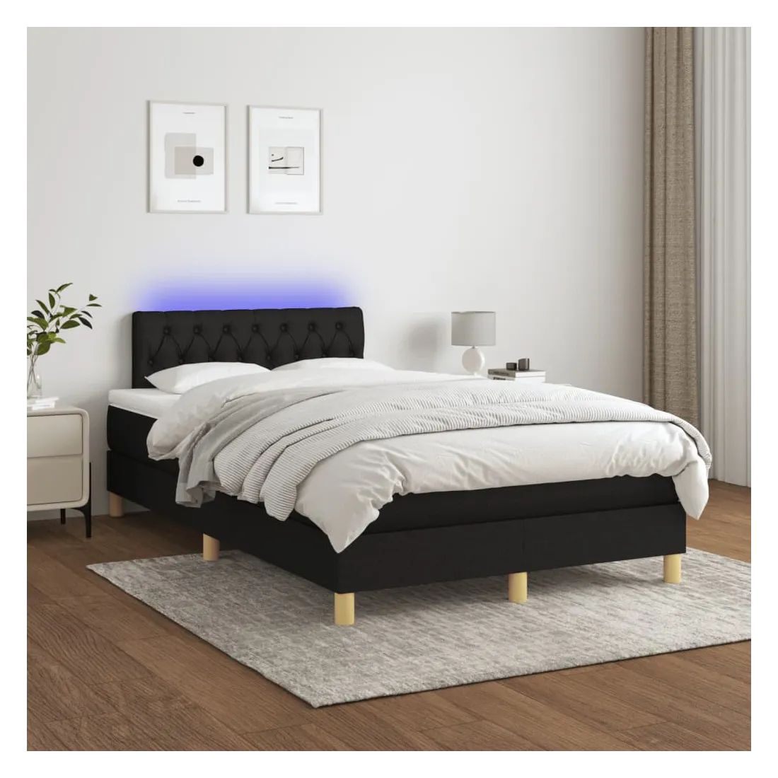Utilisez ce sommier tapissier avec matelas et LED pour profiter d'un sommeil réparateur ! C'est le point central de votre chambre à coucher. Tissu durable : le tissu présente un aspect simple et épuré, et il est respirant et durable.Tête de lit pratique : la tête de lit est réglable en hauteur selon vos préférences. La tête de lit vous offre un excellent soutien du dos lorsque vous êtes assis dans votre lit pour lire ou regarder la télévision.Bande LED colorée : apportez de l'éclairage dans l'obscurité avec des lumières LED colorées !Matelas à ressorts ensachés : le ressort ensaché individuel intégré est connu pour sa très haute qualité tout en assurant un haut niveau de durabilité et d'adaptabilité. Il peut absorber efficacement le bruit et les chocs causés par les sauts et les rotations.Protège-matelas doux pour la peau : le protège-matelas est recouvert d'un tissu résistant et doux pour la peau, ce qui le rend souple et confortable. Bon à savoir :Pour des raisons d'hygiène, le matelas ne peut pas être retourné si l'emballage est retiré ou ouvert.Seule la partie avec un symbole de ciseaux peut être coupée et seule la partie avec l'USB continuera à fonctionner comme avant.Ce produit est doté d'un connecteur USB qui nécessite une source d'alimentation USB de 5V certifiée (non incluse).