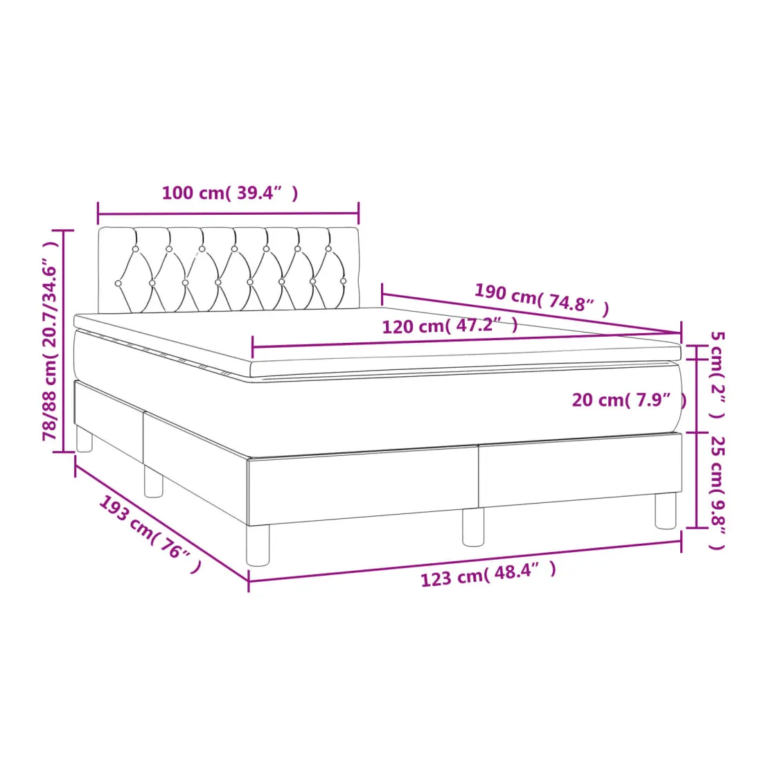 - Dimensions : 120 x 190 x 20 cm (l x L x H)