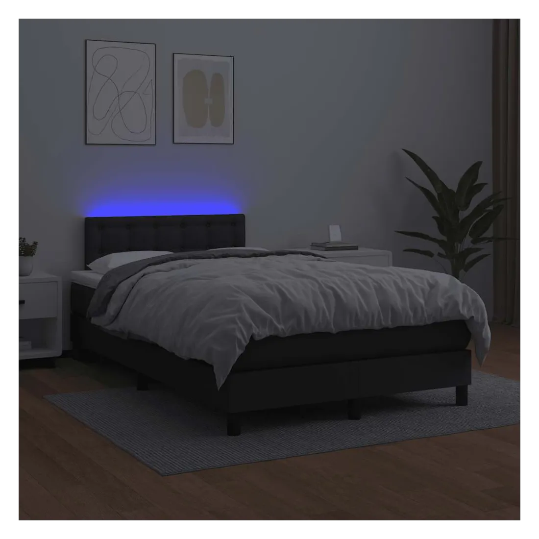 Utilisez ce sommier tapissier avec matelas et LED pour profiter d'un sommeil réparateur ! C'est le point central de votre chambre à coucher. Similicuir durable : le similicuir de qualité supérieure est un matériau très durable. Il est résistant aux taches, ce qui le rend facile à nettoyer avec un chiffon humide. La surface lisse donne également un aspect luxueux et la beauté du cuir véritable.Tête de lit pratique : la tête de lit est réglable en hauteur selon vos préférences. La tête de lit vous offre un excellent soutien du dos lorsque vous êtes assis dans votre lit pour lire ou regarder la télévision.Bande LED colorée : apportez de l'éclairage dans l'obscurité avec des lumières LED colorées !Matelas à ressorts ensachés : le ressort ensaché individuel intégré est connu pour sa très haute qualité tout en assurant un haut niveau de durabilité et d'adaptabilité. Il peut absorber efficacement le bruit et les chocs causés par les sauts et les rotations.Protège-matelas doux pour la peau : le protège-matelas est recouvert d'un tissu résistant et doux pour la peau, ce qui le rend souple et confortable. Bon à savoir :Pour des raisons d'hygiène, le matelas ne peut pas être retourné si l'emballage est retiré ou ouvert.Seule la partie avec un symbole de ciseaux peut être coupée et seule la partie avec l'USB continuera à fonctionner comme avant.Ce produit est doté d'un connecteur USB qui nécessite une source d'alimentation USB de 5V certifiée (non incluse).