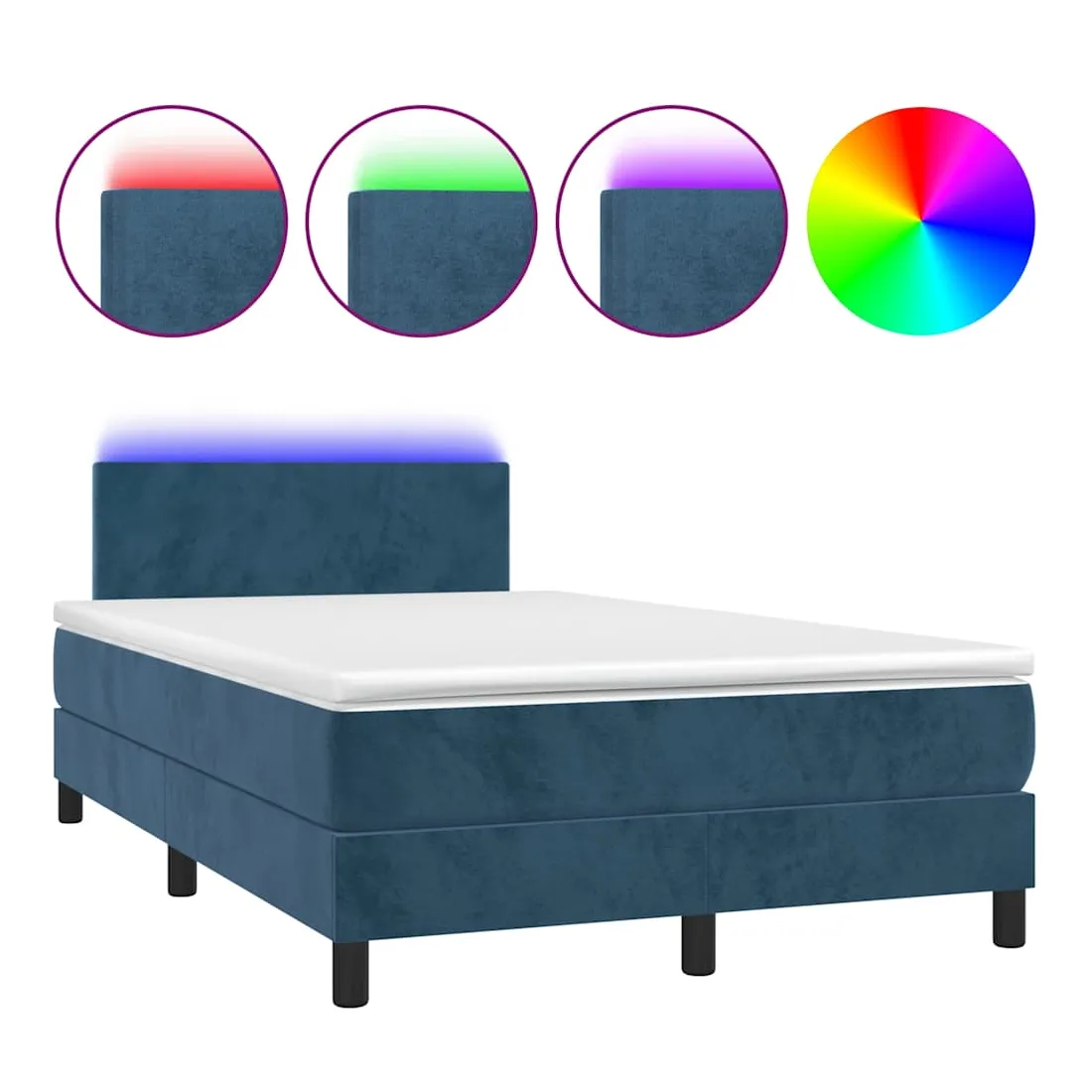 Utilisez ce sommier tapissier avec matelas et LED pour profiter d'un sommeil réparateur ! C'est le point central de votre chambre à coucher. Velours doux : le velours est un tissu doux et luxueux qui se reconnaît à son tas dense de fibres uniformément coupées qui ont une touche lisse. Le tissu en velours présente un toucher doux distinctif, ce qui le rend confortable au toucher.Tête de lit pratique : la tête de lit est réglable en hauteur selon vos préférences. La tête de lit vous offre un excellent soutien du dos lorsque vous êtes assis dans votre lit pour lire ou regarder la télévision.Bande LED colorée : apportez de l'éclairage dans l'obscurité avec des lumières LED colorées !Matelas à ressorts ensachés : le ressort ensaché individuel intégré est connu pour sa très haute qualité tout en assurant un haut niveau de durabilité et d'adaptabilité. Il peut absorber efficacement le bruit et les chocs causés par les sauts et les rotations.Protège-matelas doux pour la peau : le protège-matelas est recouvert d'un tissu résistant et doux pour la peau, ce qui le rend souple et confortable. Bon à savoir :Pour des raisons d'hygiène, le matelas ne peut pas être retourné si l'emballage est retiré ou ouvert.Seule la partie avec un symbole de ciseaux peut être coupée et seule la partie avec l'USB continuera à fonctionner comme avant.Ce produit est doté d'un connecteur USB qui nécessite une source d'alimentation USB de 5V certifiée (non incluse).
