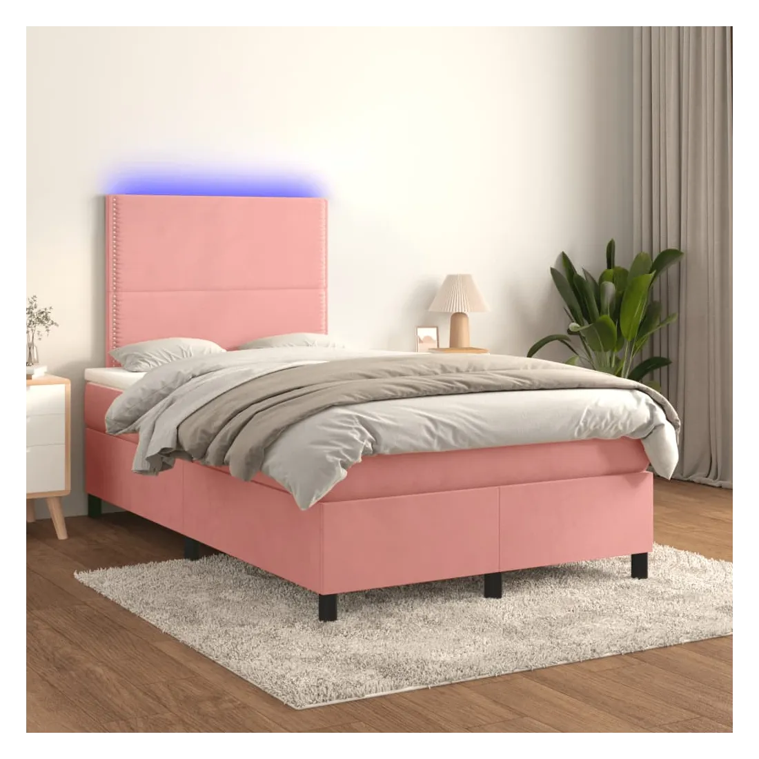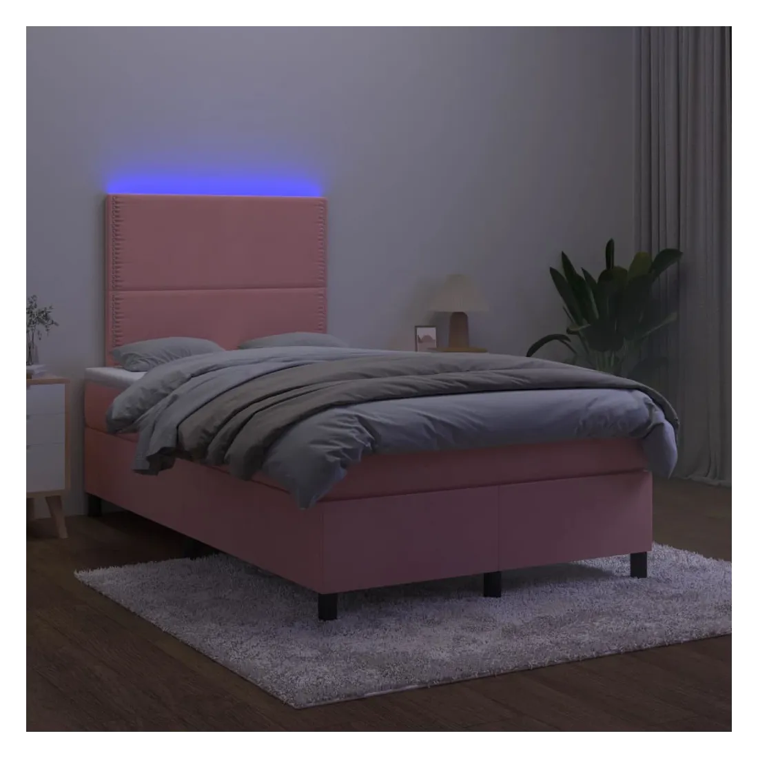 Sommier à lattes de lit et matelas LED rose 120x190 cm velours