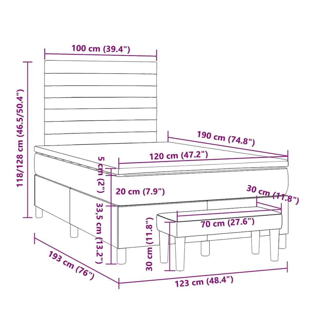 Utilisez ce lit à sommier pour profiter d'une nuit de sommeil réparatrice ! Il vous offre une relaxation maximale et un sommeil agréable. Tissu durable : le tissu présente un aspect simple et épuré, et il est respirant et durable.Tête de lit pratique : la tête de lit est réglable en hauteur selon vos préférences. La tête de lit vous offre un excellent soutien du dos lorsque vous êtes assis dans votre lit pour lire ou regarder la télévision.Matelas à ressorts ensachés : le ressort ensaché individuel intégré est connu pour sa très haute qualité tout en assurant un haut niveau de durabilité et d'adaptabilité. Il peut absorber efficacement le bruit et les chocs causés par les sauts et les rotations.Support moyen-dur : ce matelas de lit offre une stabilité accrue et juste le niveau de fermeté sans sacrifier le confort. Il est donc idéal pour les personnes qui dorment sur le dos ou sur le ventre.Protège-matelas doux pour la peau : le protège-matelas est recouvert d'un tissu résistant et doux pour la peau, ce qui le rend souple et confortable.Banc multifonctionnel : ce banc peut servir de siège supplémentaire dans votre maison. Il peut également être utilisé comme banc de bout de lit. Bon à savoir :Pour des raisons d'hygiène, le matelas ne peut pas être retourné si l'emballage est retiré ou ouvert.