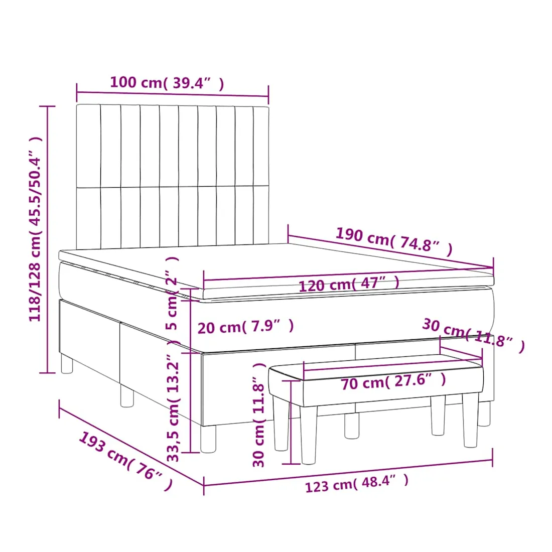 - 120 x 190 cm