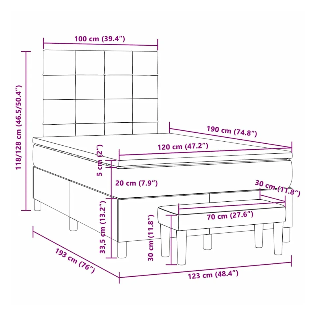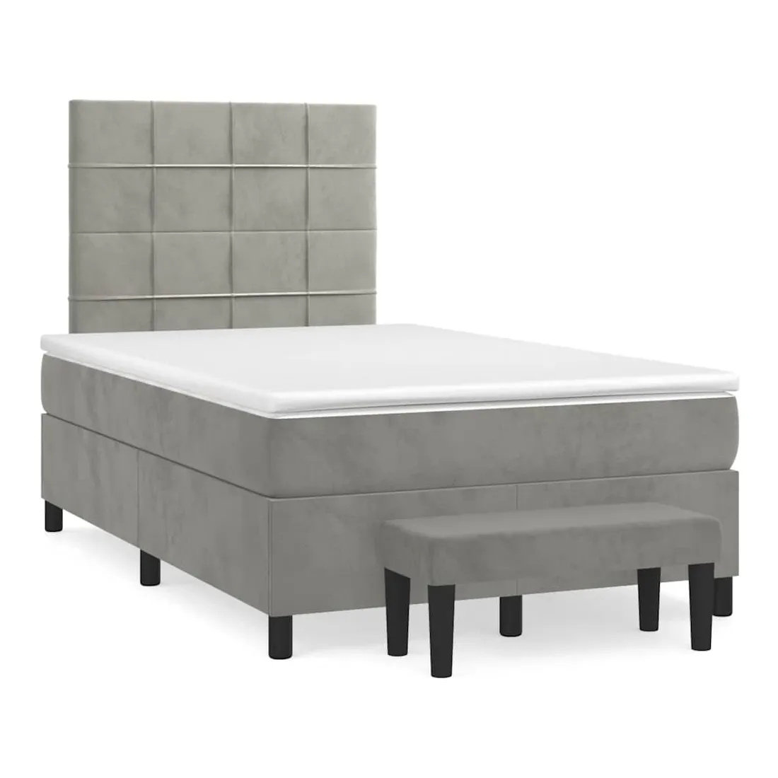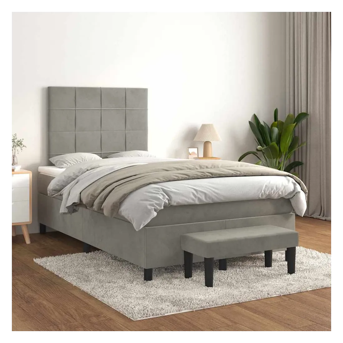 Sommier à lattes de lit et matelas gris clair 120x190cm velours