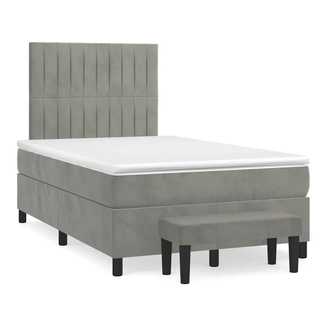 Sommier à lattes de lit et matelas gris clair 120x190cm velours