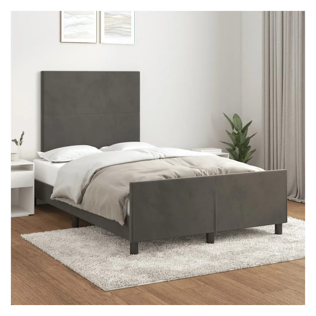 Obtenez une meilleure nuit de sommeil reposante grâce à ce cadre de lit avec tête de lit ! Il est un supplément accueillant à toute chambre à coucher. Velours doux : le velours est un tissu doux et luxueux qui se reconnaît à son tas dense de fibres uniformément coupées qui ont une touche lisse. Le tissu en velours présente un toucher doux distinctif, ce qui le rend confortable au toucher.Hauteur réglable : la tête de lit est réglable en hauteur selon vos préférences.Pieds de soutien : le lit est soutenu par des pieds robustes, qui assurent sa stabilité, sa sécurité et sa fermeté.Lattes de contreplaqué : les lattes de contreplaqué assurent une bonne répartition du poids, garantissant que le matelas reste en place à chaque torsion de votre corps pendant le sommeil.Excellent soutien : la tête de lit vous offre un excellent soutien du dos lorsque vous êtes assis dans votre lit pour lire ou regarder la télévision. Bon à savoir :La livraison comprend uniquement un cadre de lit. Le matelas n'est pas inclus. Vous pouvez consulter notre boutique pour trouver les matelas assortis.