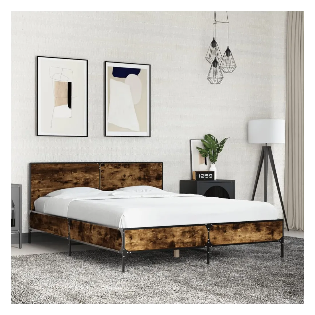 Cadre de lit sans matelas chêne fumé 120x190 cm