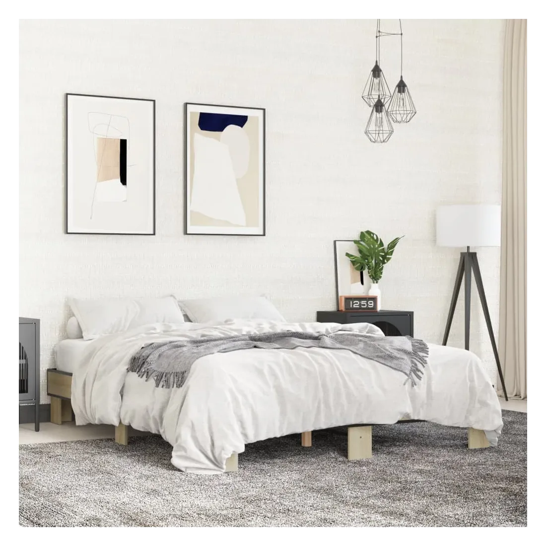Obtenez une meilleure nuit de sommeil reposante grâce à ce cadre de lit ! Il est un supplément accueillant à toute chambre à coucher. Matériau durable : le bois d'ingénierie est d'une qualité exceptionnelle avec une surface lisse et présente également résistance, stabilité et résistance à l'humidité. Pieds de soutien : le lit est soutenu par des pieds robustes, qui assurent sa stabilité, sa sécurité et sa fermeté.Lattes de contreplaqué : les lattes de contreplaqué assurent une bonne répartition du poids, garantissant que le matelas reste en place à chaque torsion de votre corps pendant le sommeil. Bon à savoir : Un matelas n'est pas inclus avec ce lit. Nous offrons une sélection variée de matelas. Vous pouvez consulter notre boutique pour trouver un matelas assorti.