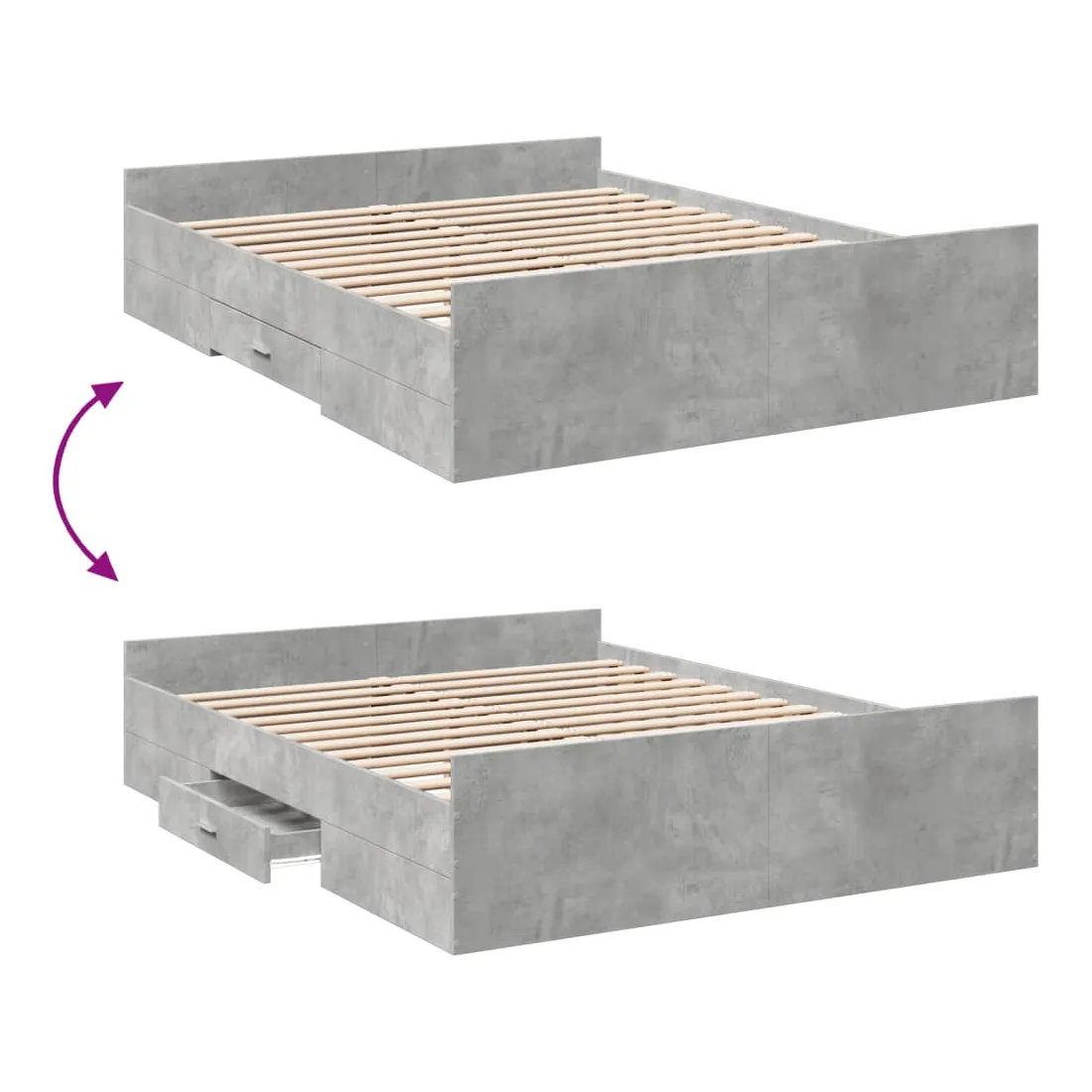 Cadre de lit avec tiroirs sans matelas gris béton 160x200 cm