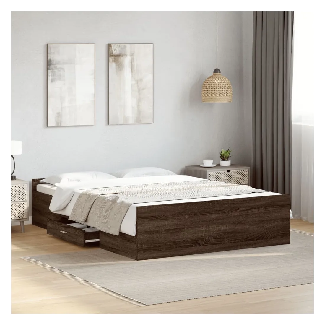 vidaXLAjoutez une touche moderne à votre chambre à coucher avec ce cadre de lit avec tiroirs ! Il apportera une touche pratique et décorative à votre espace de vie. Matériau durable : le cadre de lit est fabriquée en bois d'ingénierie. Le bois d'ingénierie est d'une qualité exceptionnelle avec une surface lisse et présente également de la résistance, de la stabilité et de la résistance à l'humidité.Lattes robustes : les lattes de contreplaqué assurent une bonne répartition du poids, garantissant que le matelas reste en place à chaque torsion de votre corps pendant le sommeil.Fonction de rangement : les tiroirs de lit inclus offrent suffisamment d'espace de rangement pour ranger vos articles essentiels, gardant votre pièce propre et bien rangée. Bon à savoir :Un matelas n'est pas inclus avec ce lit. Nous offrons une sélection variée de matelas. Vous pouvez consulter notre boutique pour trouver un matelas assorti.