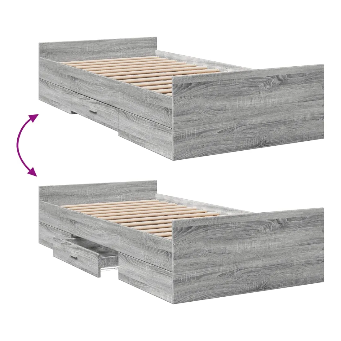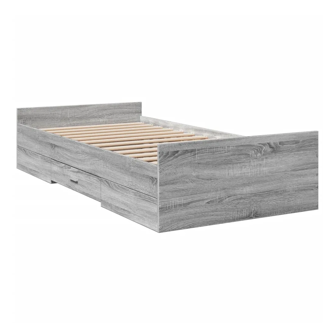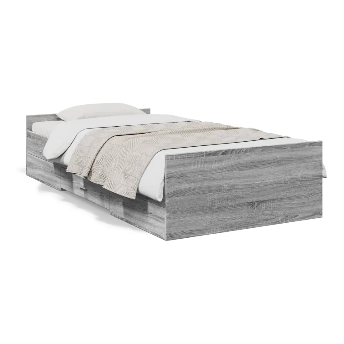 Cadre de lit avec tiroirs sans matelas sonoma gris 100x200 cm
