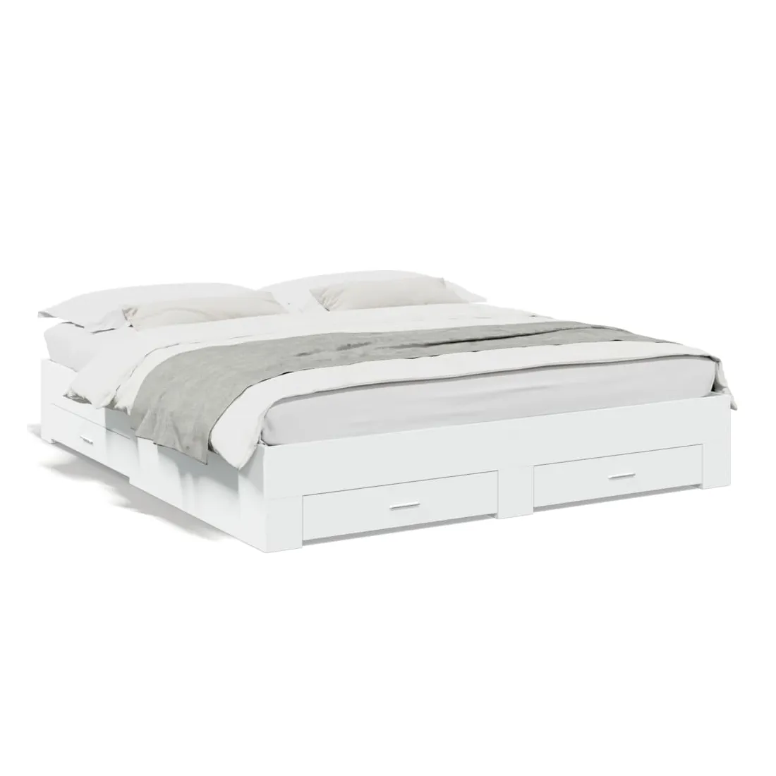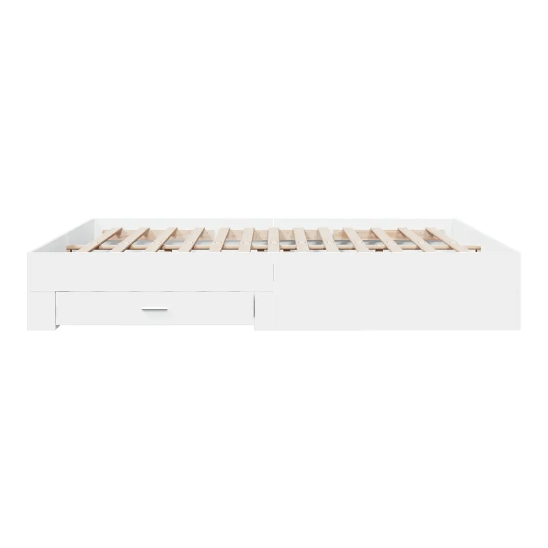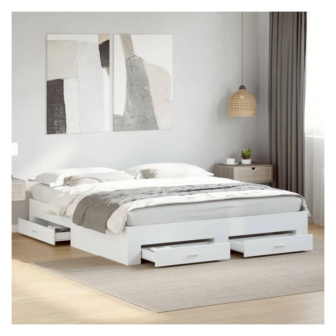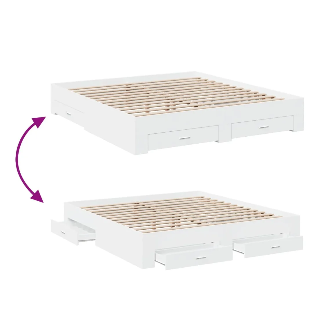 Ajoutez une touche moderne à votre chambre à coucher avec ce cadre de lit avec tiroirs ! Il apportera une touche pratique et décorative à votre espace de vie. Matériau durable : le cadre de lit est fabriquée en bois d'ingénierie. Le bois d'ingénierie est d'une qualité exceptionnelle avec une surface lisse et présente également de la résistance, de la stabilité et de la résistance à l'humidité.Lattes robustes : les lattes de contreplaqué assurent une bonne répartition du poids, garantissant que le matelas reste en place à chaque torsion de votre corps pendant le sommeil.Fonction de rangement : les tiroirs de lit inclus offrent suffisamment d'espace de rangement pour ranger vos articles essentiels, gardant votre pièce propre et bien rangée. Bon à savoir :Un matelas n'est pas inclus avec ce lit. Nous offrons une sélection variée de matelas. Vous pouvez consulter notre boutique pour trouver un matelas assorti.
