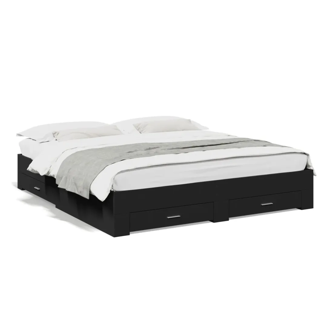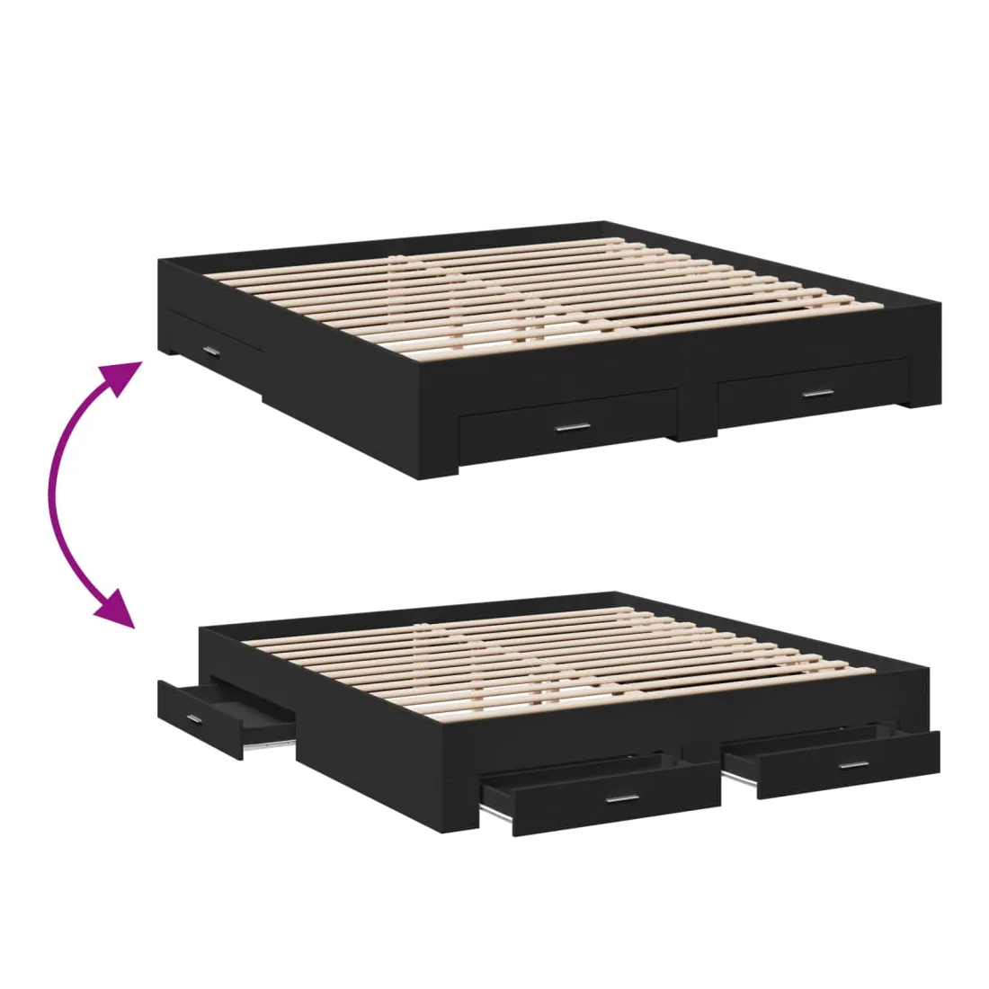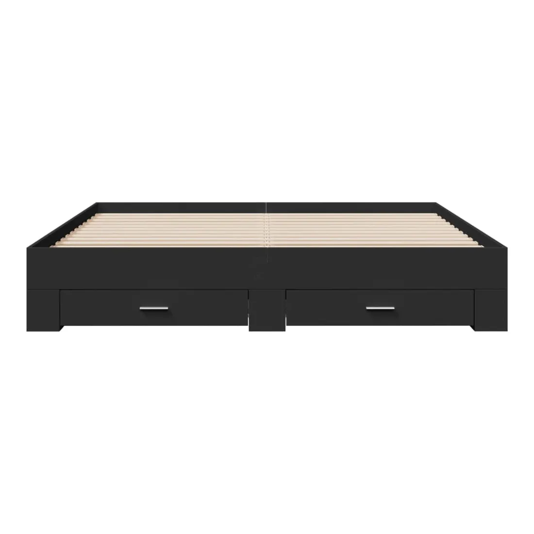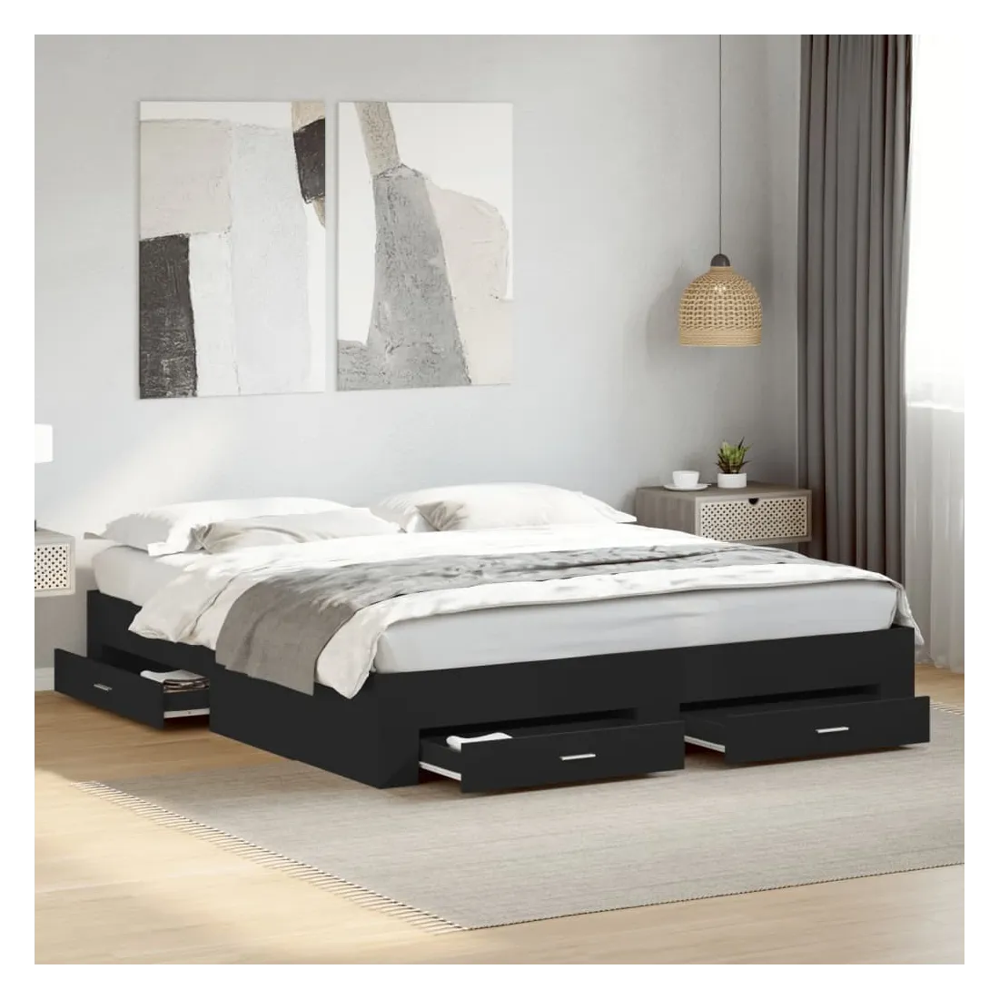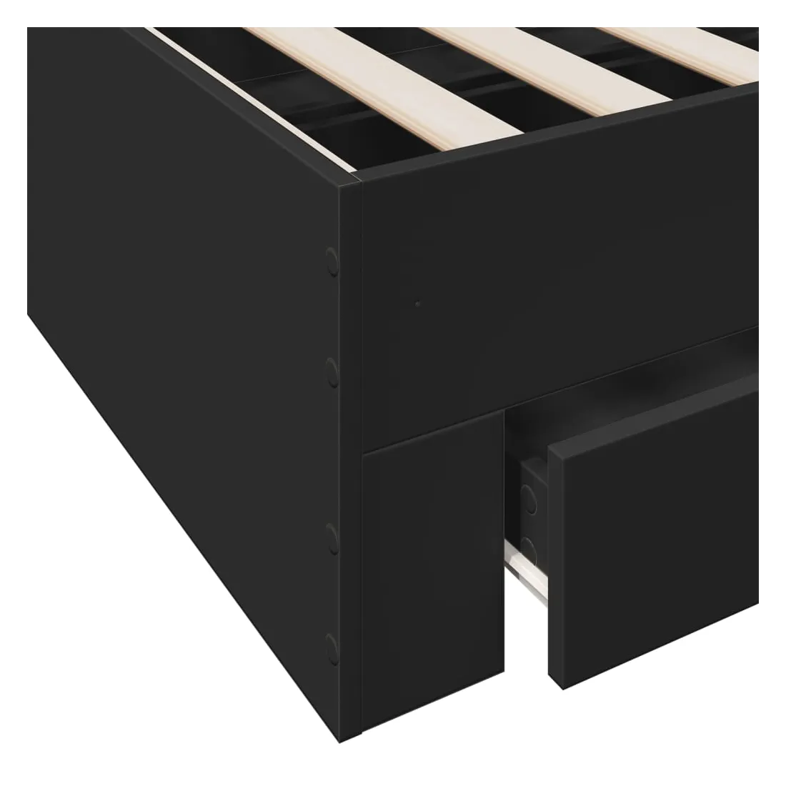 Ajoutez une touche moderne à votre chambre à coucher avec ce cadre de lit avec tiroirs ! Il apportera une touche pratique et décorative à votre espace de vie. Matériau durable : le cadre de lit est fabriquée en bois d'ingénierie. Le bois d'ingénierie est d'une qualité exceptionnelle avec une surface lisse et présente également de la résistance, de la stabilité et de la résistance à l'humidité.Lattes robustes : les lattes de contreplaqué assurent une bonne répartition du poids, garantissant que le matelas reste en place à chaque torsion de votre corps pendant le sommeil.Fonction de rangement : les tiroirs de lit inclus offrent suffisamment d'espace de rangement pour ranger vos articles essentiels, gardant votre pièce propre et bien rangée. Bon à savoir :Un matelas n'est pas inclus avec ce lit. Nous offrons une sélection variée de matelas. Vous pouvez consulter notre boutique pour trouver un matelas assorti.