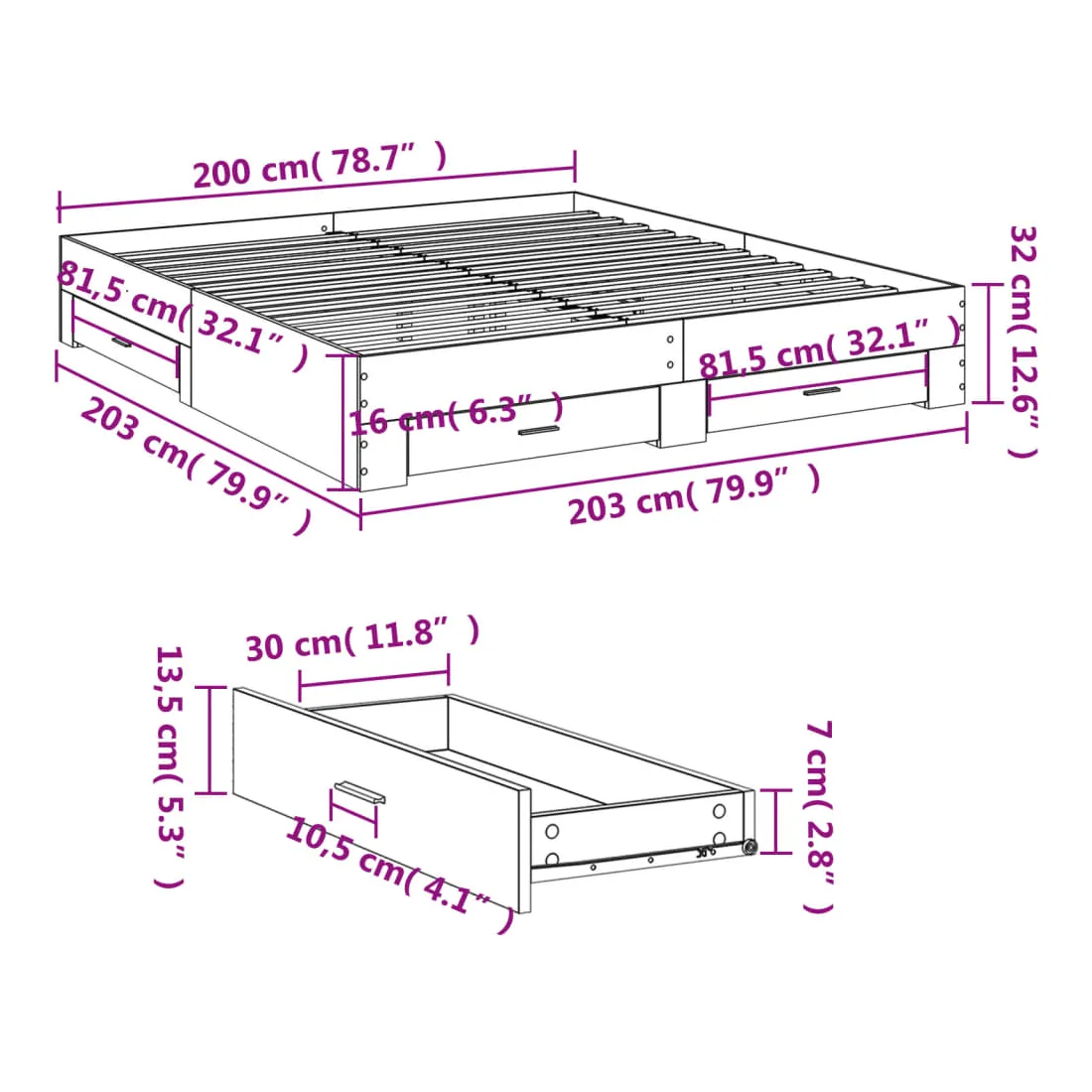 - Dimensions des tiroirs de lit (chacun) : 81,5 x 31,5 x 13,5 cm (L x l x H)
