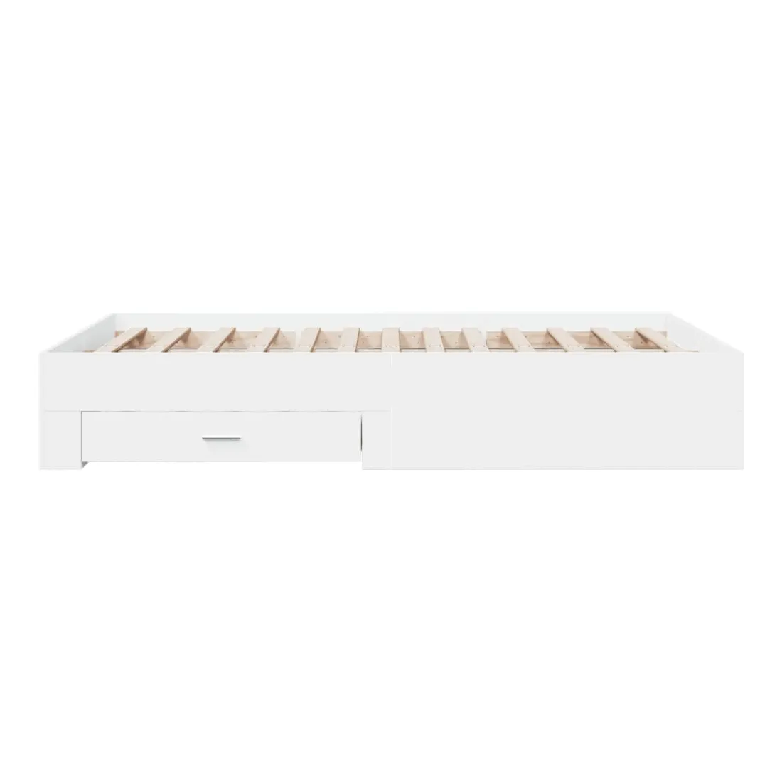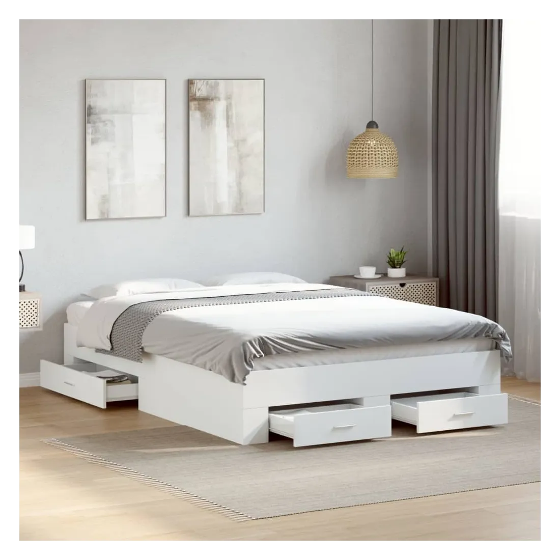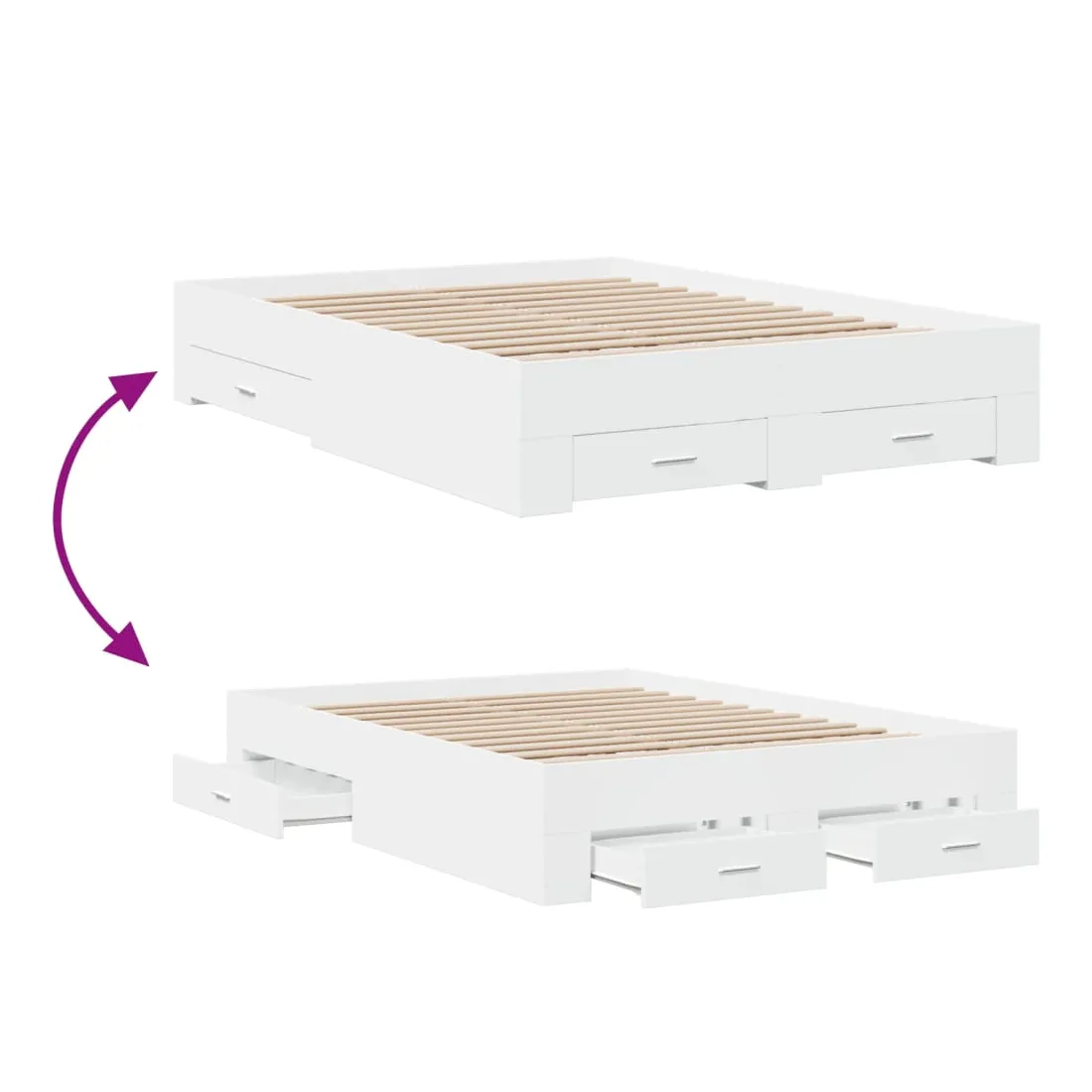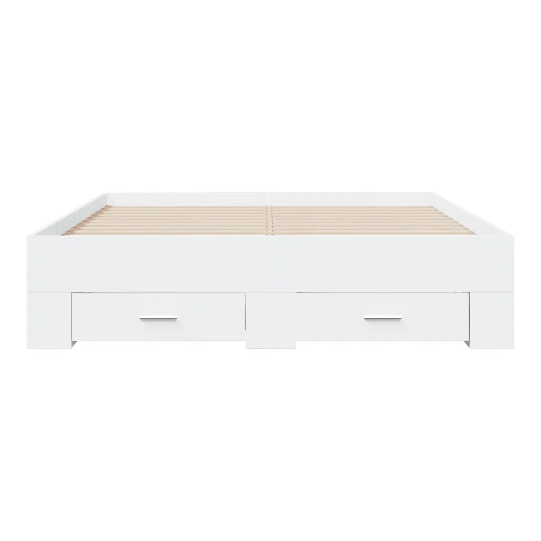 Ajoutez une touche moderne à votre chambre à coucher avec ce cadre de lit avec tiroirs ! Il apportera une touche pratique et décorative à votre espace de vie. Matériau durable : le cadre de lit est fabriquée en bois d'ingénierie. Le bois d'ingénierie est d'une qualité exceptionnelle avec une surface lisse et présente également de la résistance, de la stabilité et de la résistance à l'humidité.Lattes robustes : les lattes de contreplaqué assurent une bonne répartition du poids, garantissant que le matelas reste en place à chaque torsion de votre corps pendant le sommeil.Fonction de rangement : les tiroirs de lit inclus offrent suffisamment d'espace de rangement pour ranger vos articles essentiels, gardant votre pièce propre et bien rangée. Bon à savoir :Un matelas n'est pas inclus avec ce lit. Nous offrons une sélection variée de matelas. Vous pouvez consulter notre boutique pour trouver un matelas assorti.