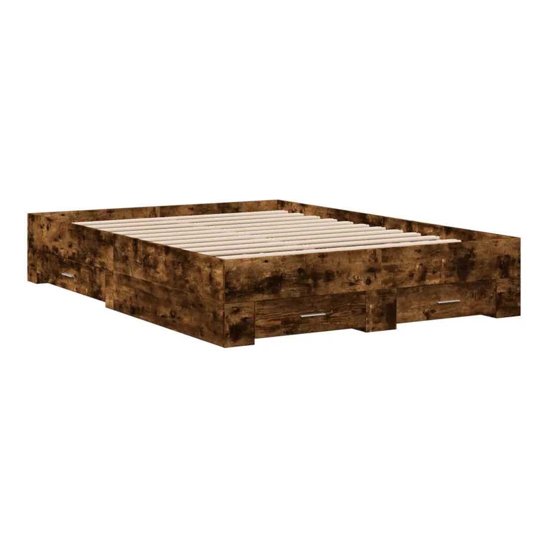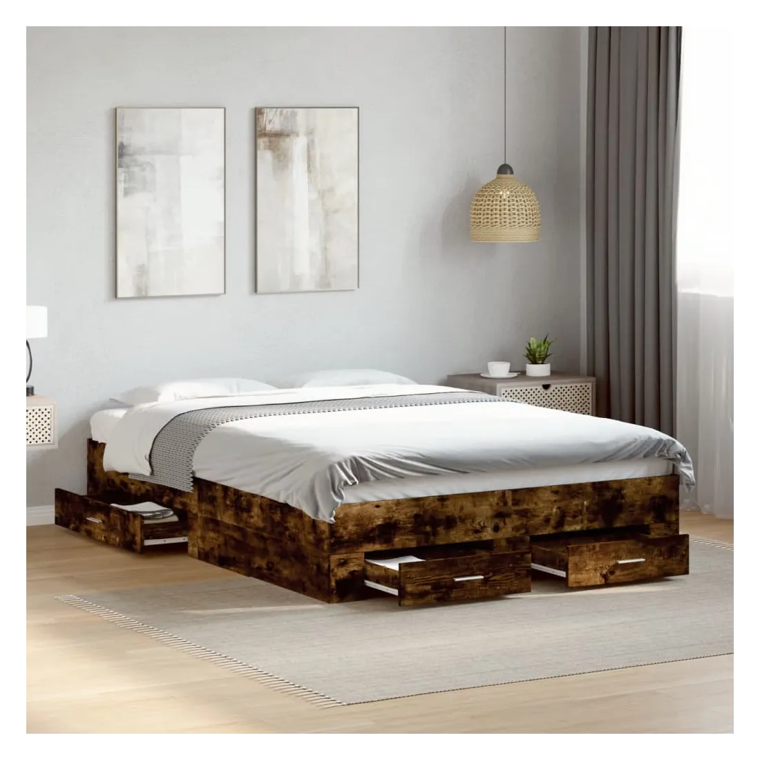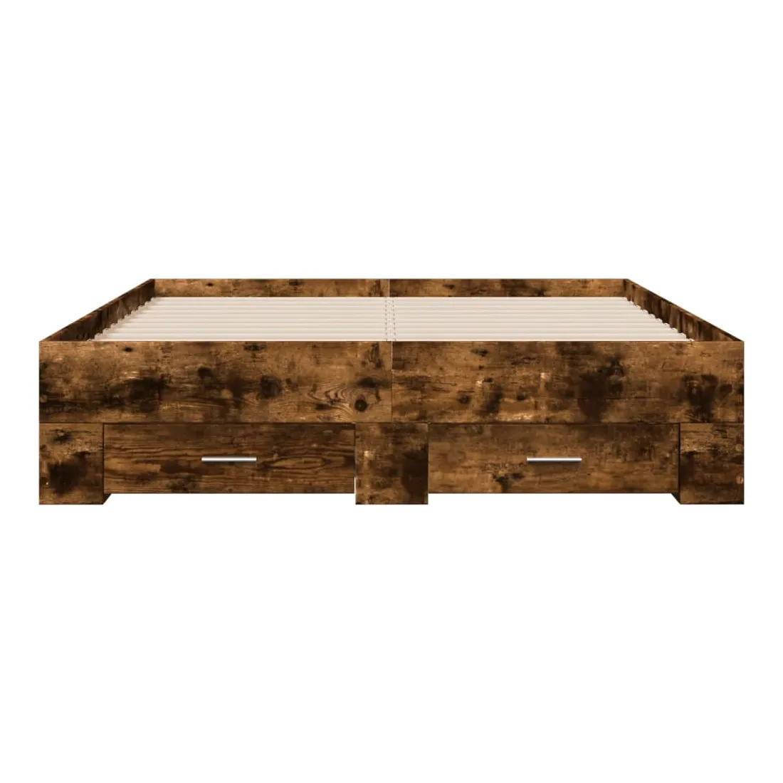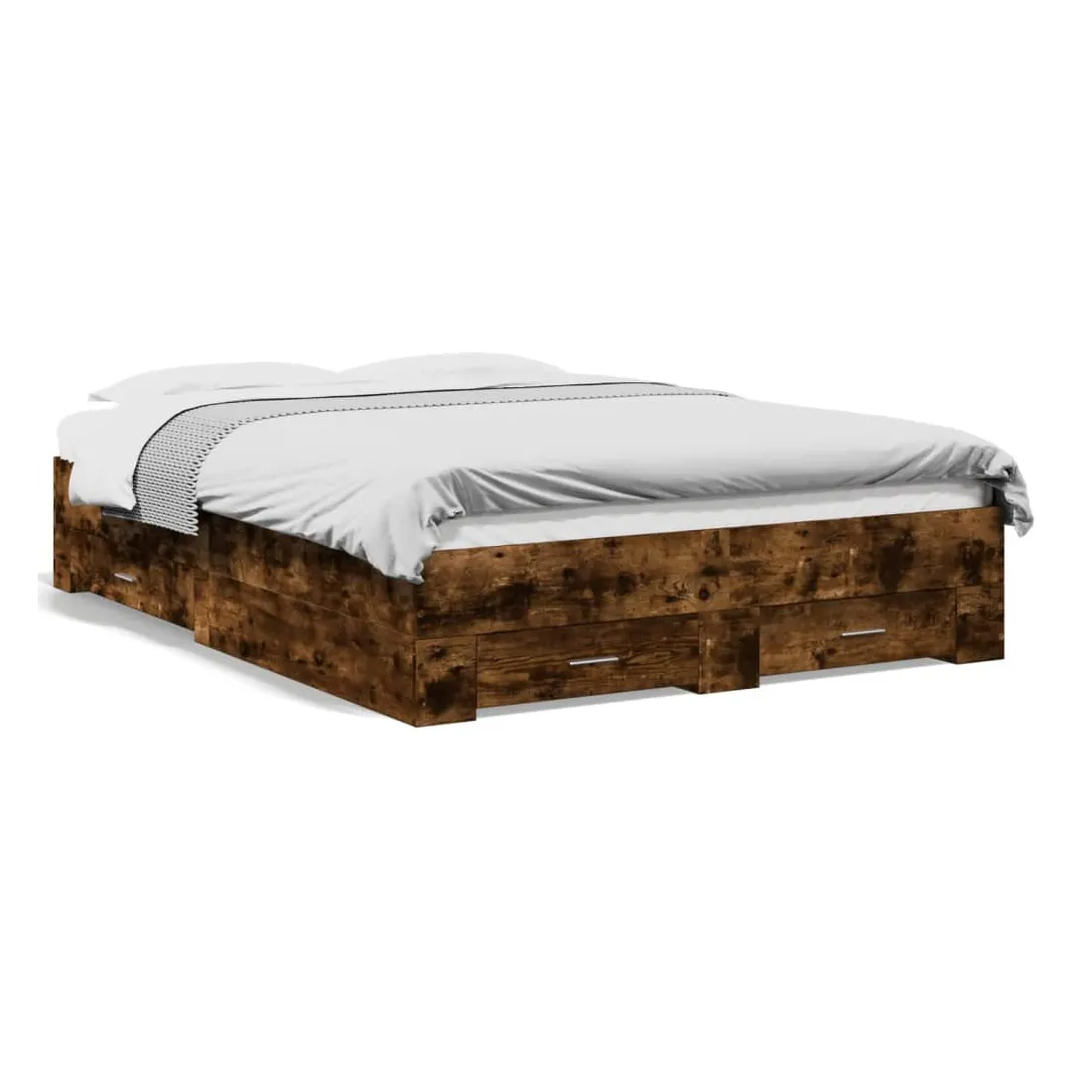 Ajoutez une touche moderne à votre chambre à coucher avec ce cadre de lit avec tiroirs ! Il apportera une touche pratique et décorative à votre espace de vie. Matériau durable : le cadre de lit est fabriquée en bois d'ingénierie. Le bois d'ingénierie est d'une qualité exceptionnelle avec une surface lisse et présente également de la résistance, de la stabilité et de la résistance à l'humidité.Lattes robustes : les lattes de contreplaqué assurent une bonne répartition du poids, garantissant que le matelas reste en place à chaque torsion de votre corps pendant le sommeil.Fonction de rangement : les tiroirs de lit inclus offrent suffisamment d'espace de rangement pour ranger vos articles essentiels, gardant votre pièce propre et bien rangée. Bon à savoir :Un matelas n'est pas inclus avec ce lit. Nous offrons une sélection variée de matelas. Vous pouvez consulter notre boutique pour trouver un matelas assorti.