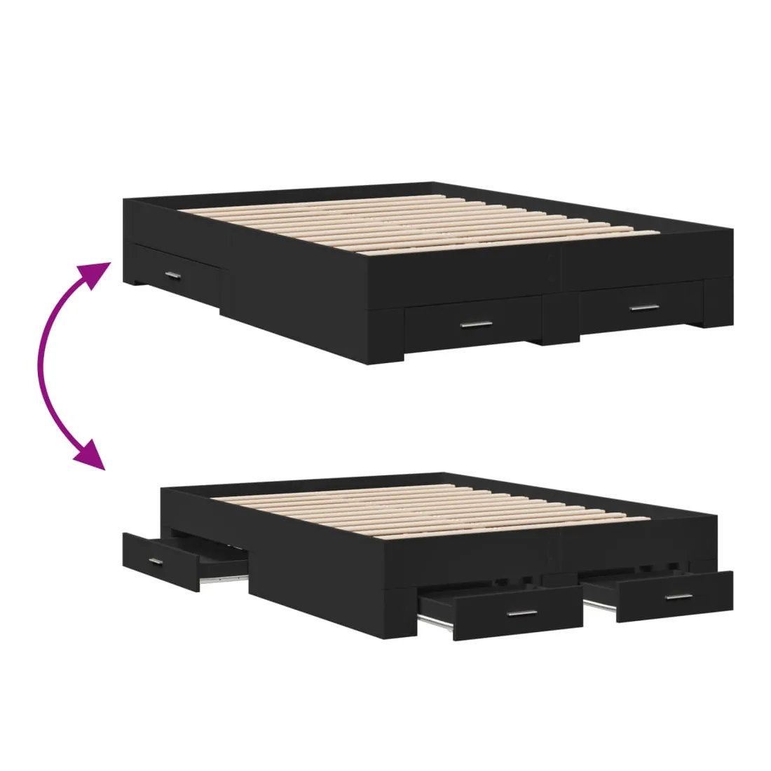 Ajoutez une touche moderne à votre chambre à coucher avec ce cadre de lit avec tiroirs ! Il apportera une touche pratique et décorative à votre espace de vie. Matériau durable : le cadre de lit est fabriquée en bois d'ingénierie. Le bois d'ingénierie est d'une qualité exceptionnelle avec une surface lisse et présente également de la résistance, de la stabilité et de la résistance à l'humidité.Lattes robustes : les lattes de contreplaqué assurent une bonne répartition du poids, garantissant que le matelas reste en place à chaque torsion de votre corps pendant le sommeil.Fonction de rangement : les tiroirs de lit inclus offrent suffisamment d'espace de rangement pour ranger vos articles essentiels, gardant votre pièce propre et bien rangée. Bon à savoir :Un matelas n'est pas inclus avec ce lit. Nous offrons une sélection variée de matelas. Vous pouvez consulter notre boutique pour trouver un matelas assorti.