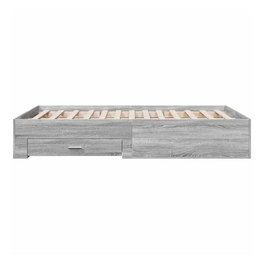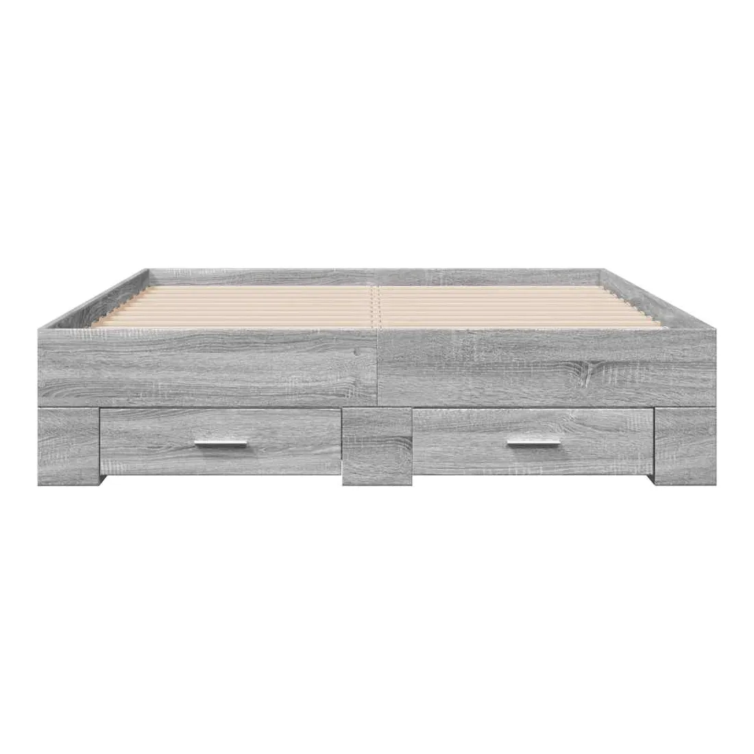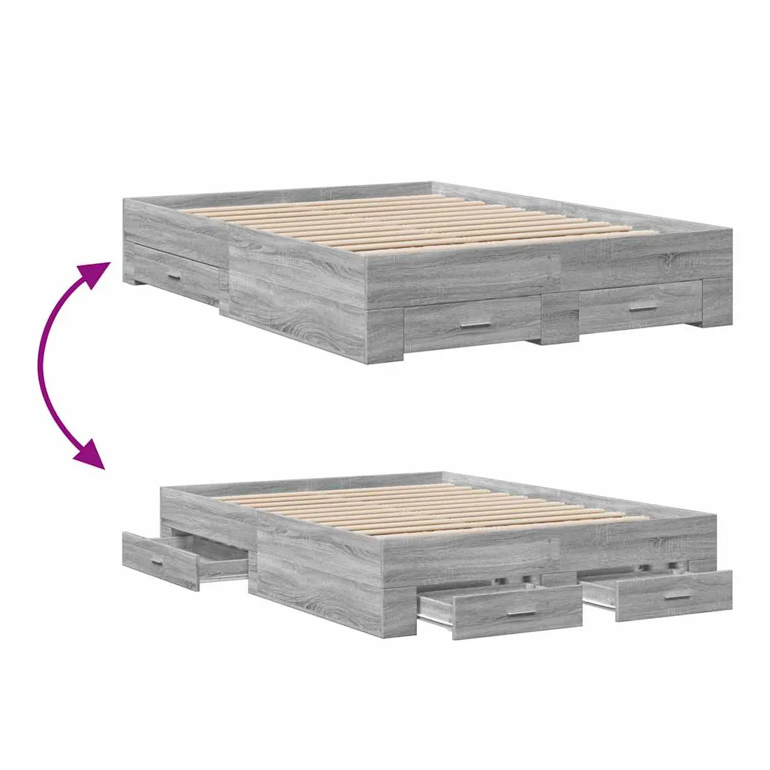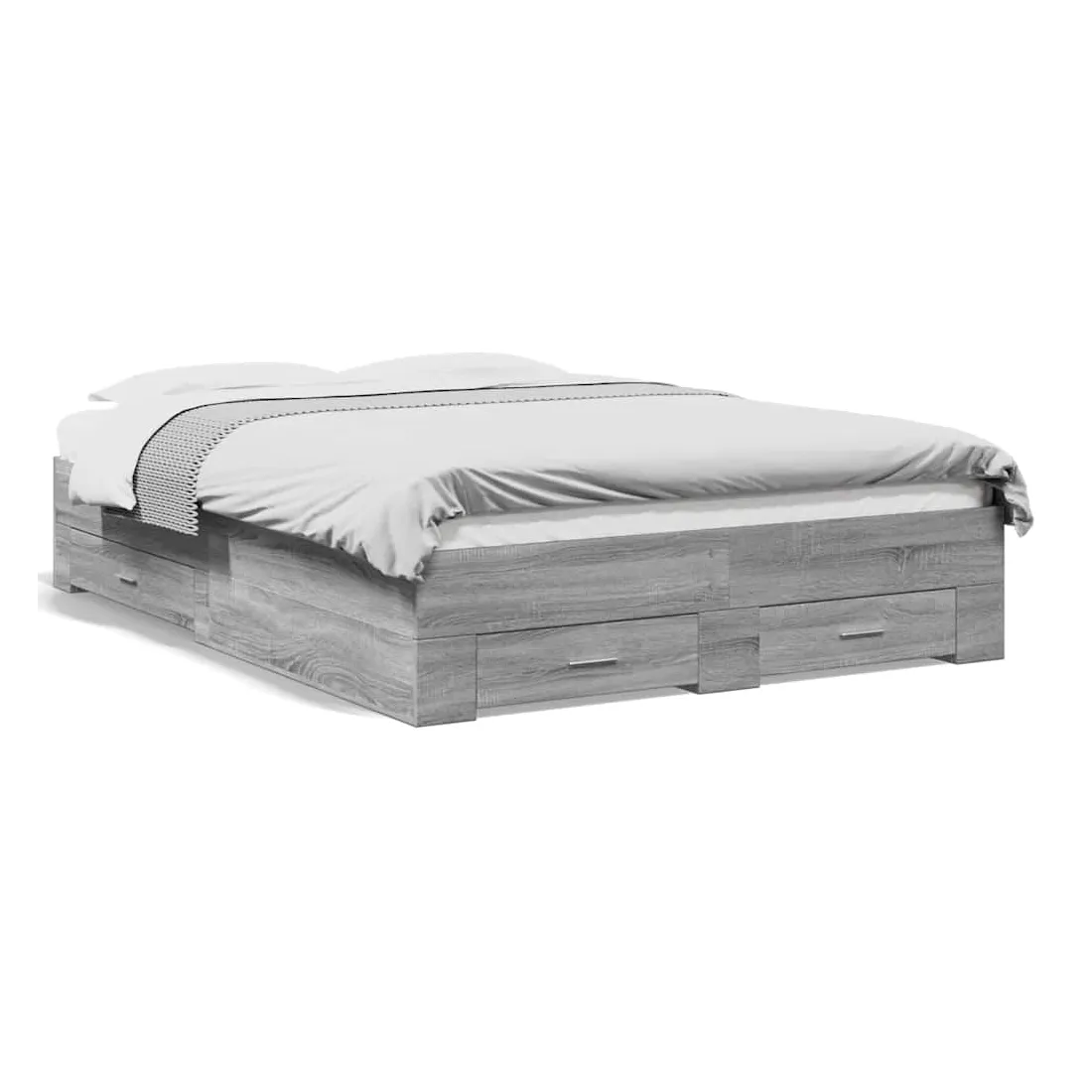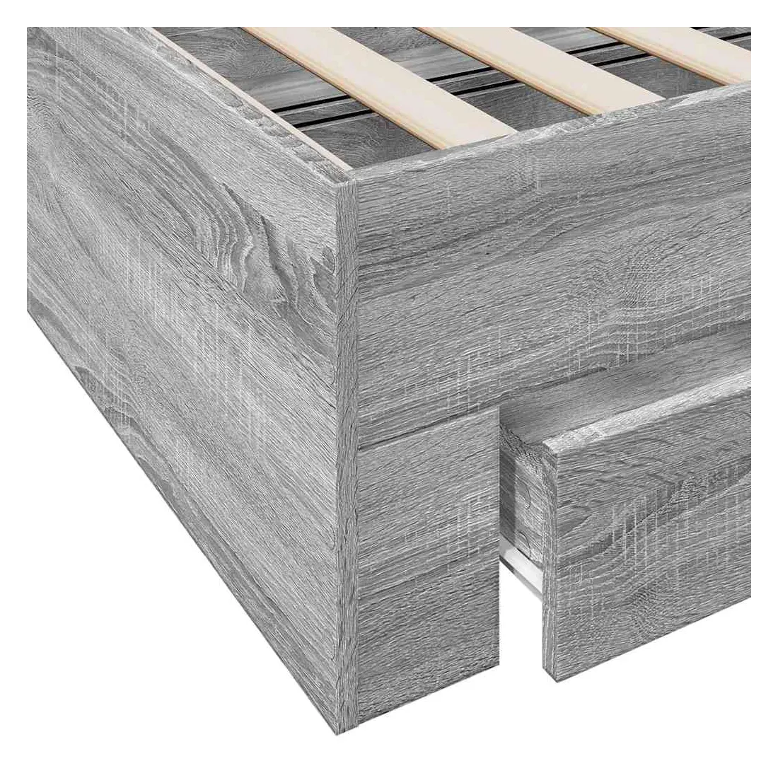 Ajoutez une touche moderne à votre chambre à coucher avec ce cadre de lit avec tiroirs ! Il apportera une touche pratique et décorative à votre espace de vie. Matériau durable : le cadre de lit est fabriquée en bois d'ingénierie. Le bois d'ingénierie est d'une qualité exceptionnelle avec une surface lisse et présente également de la résistance, de la stabilité et de la résistance à l'humidité.Lattes robustes : les lattes de contreplaqué assurent une bonne répartition du poids, garantissant que le matelas reste en place à chaque torsion de votre corps pendant le sommeil.Fonction de rangement : les tiroirs de lit inclus offrent suffisamment d'espace de rangement pour ranger vos articles essentiels, gardant votre pièce propre et bien rangée. Bon à savoir :Un matelas n'est pas inclus avec ce lit. Nous offrons une sélection variée de matelas. Vous pouvez consulter notre boutique pour trouver un matelas assorti.