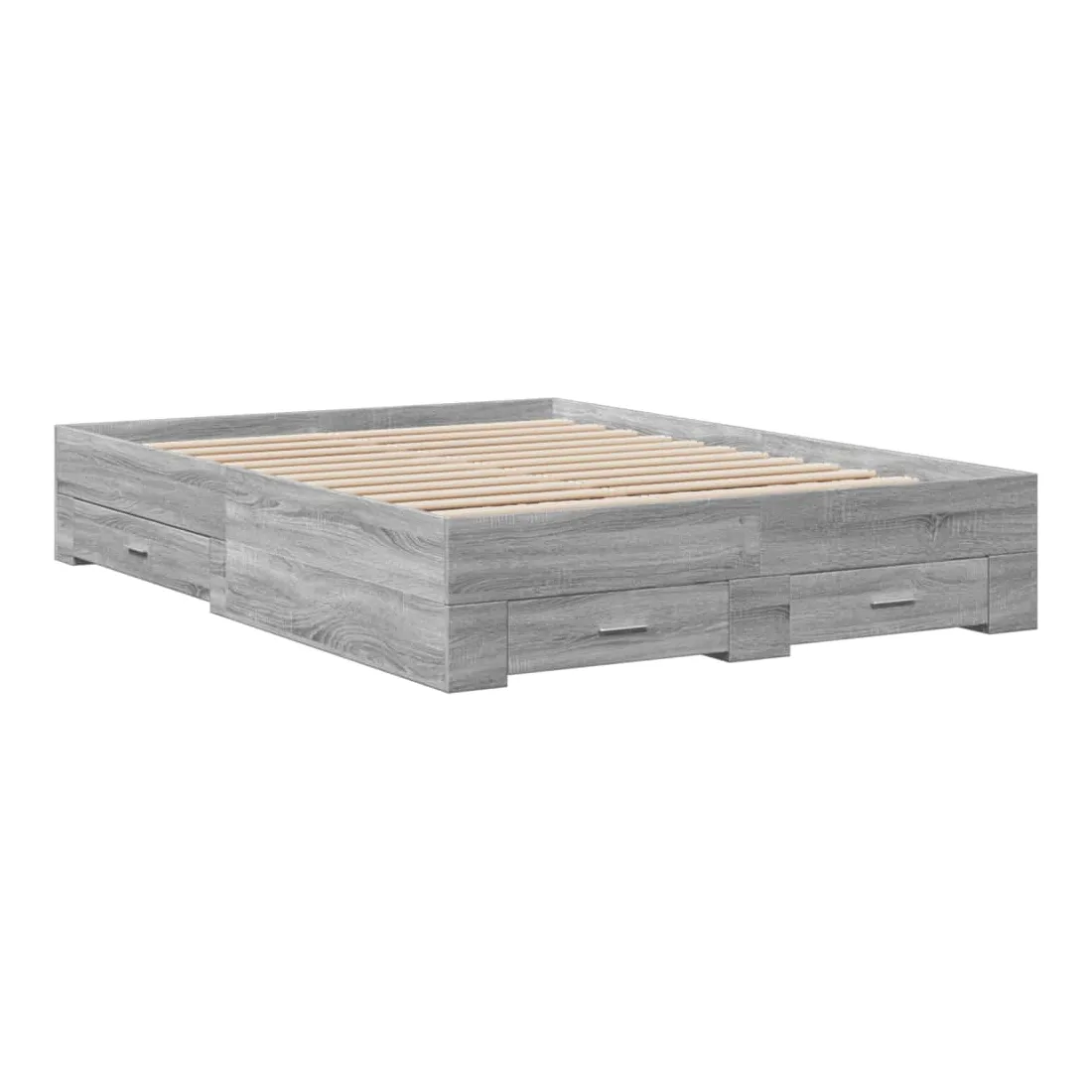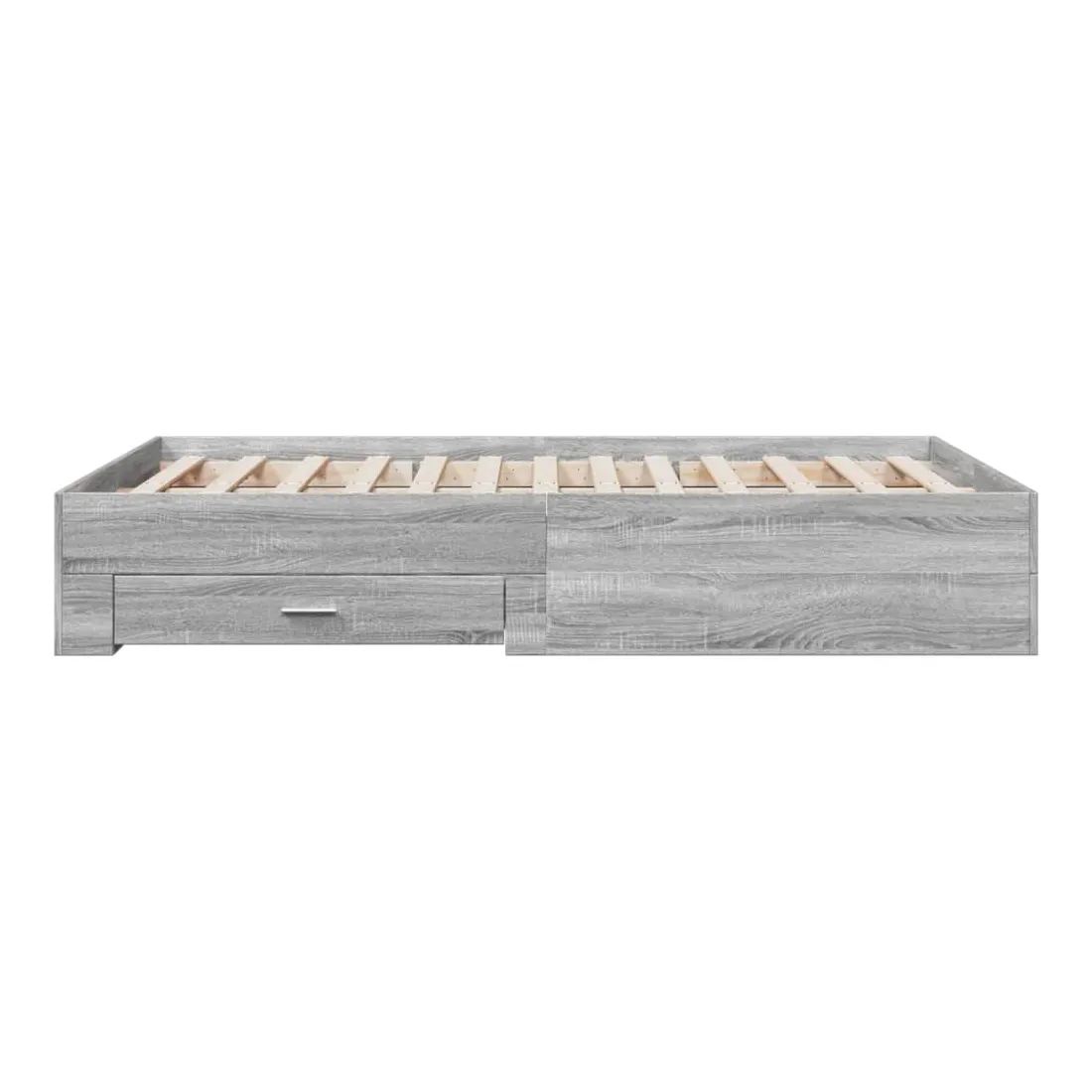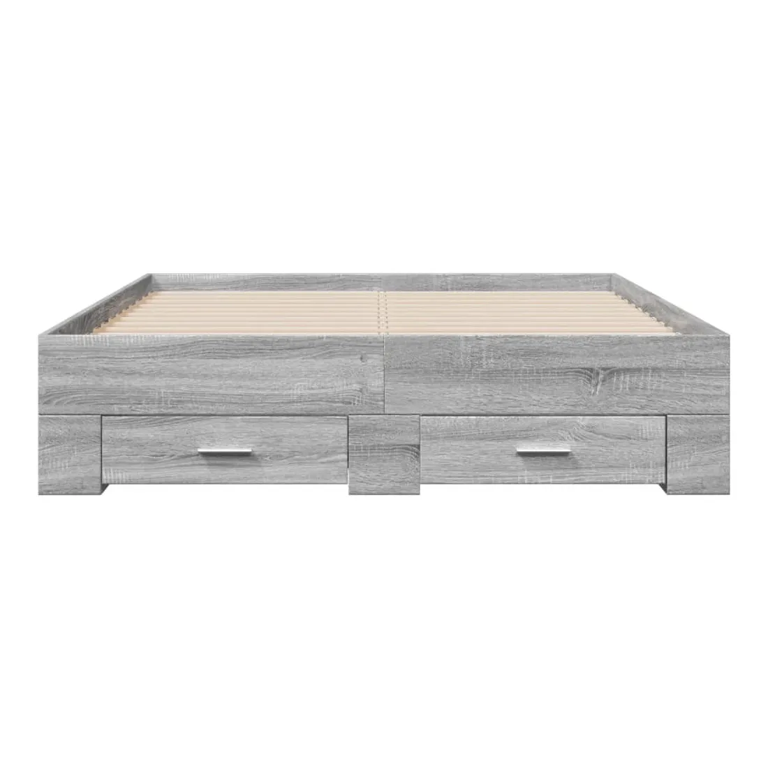 Ajoutez une touche moderne à votre chambre à coucher avec ce cadre de lit avec tiroirs ! Il apportera une touche pratique et décorative à votre espace de vie. Matériau durable : le cadre de lit est fabriquée en bois d'ingénierie. Le bois d'ingénierie est d'une qualité exceptionnelle avec une surface lisse et présente également de la résistance, de la stabilité et de la résistance à l'humidité.Lattes robustes : les lattes de contreplaqué assurent une bonne répartition du poids, garantissant que le matelas reste en place à chaque torsion de votre corps pendant le sommeil.Fonction de rangement : les tiroirs de lit inclus offrent suffisamment d'espace de rangement pour ranger vos articles essentiels, gardant votre pièce propre et bien rangée. Bon à savoir :Un matelas n'est pas inclus avec ce lit. Nous offrons une sélection variée de matelas. Vous pouvez consulter notre boutique pour trouver un matelas assorti.