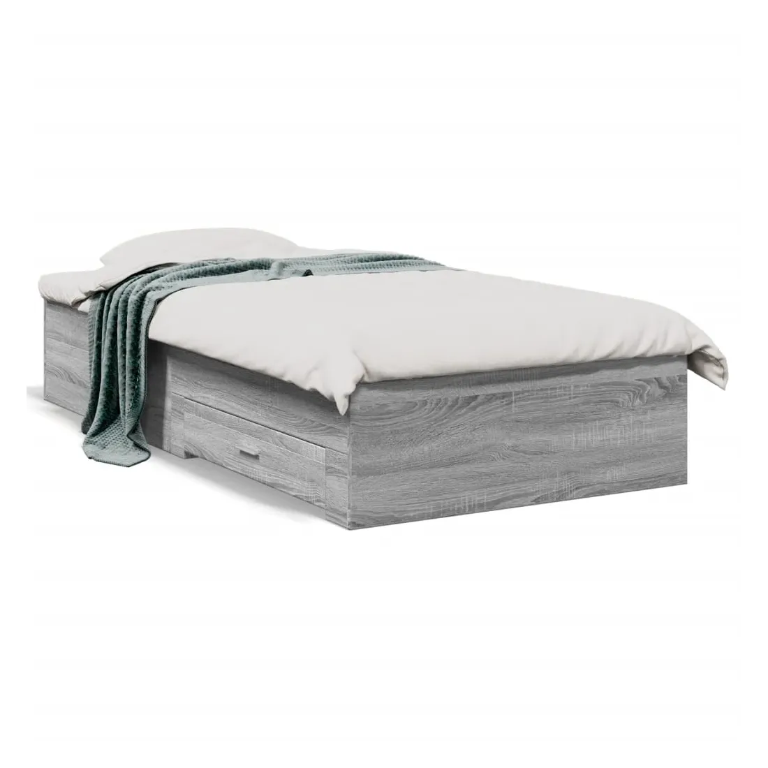 Ajoutez une touche moderne à votre chambre à coucher avec ce cadre de lit avec tiroirs ! Il apportera une touche pratique et décorative à votre espace de vie. Matériau durable : le cadre de lit est fabriquée en bois d'ingénierie. Le bois d'ingénierie est d'une qualité exceptionnelle avec une surface lisse et présente également de la résistance, de la stabilité et de la résistance à l'humidité.Lattes robustes : les lattes de contreplaqué assurent une bonne répartition du poids, garantissant que le matelas reste en place à chaque torsion de votre corps pendant le sommeil.Fonction de rangement : les tiroirs de lit inclus offrent suffisamment d'espace de rangement pour ranger vos articles essentiels, gardant votre pièce propre et bien rangée. Bon à savoir :Un matelas n'est pas inclus avec ce lit. Nous offrons une sélection variée de matelas. Vous pouvez consulter notre boutique pour trouver un matelas assorti.
