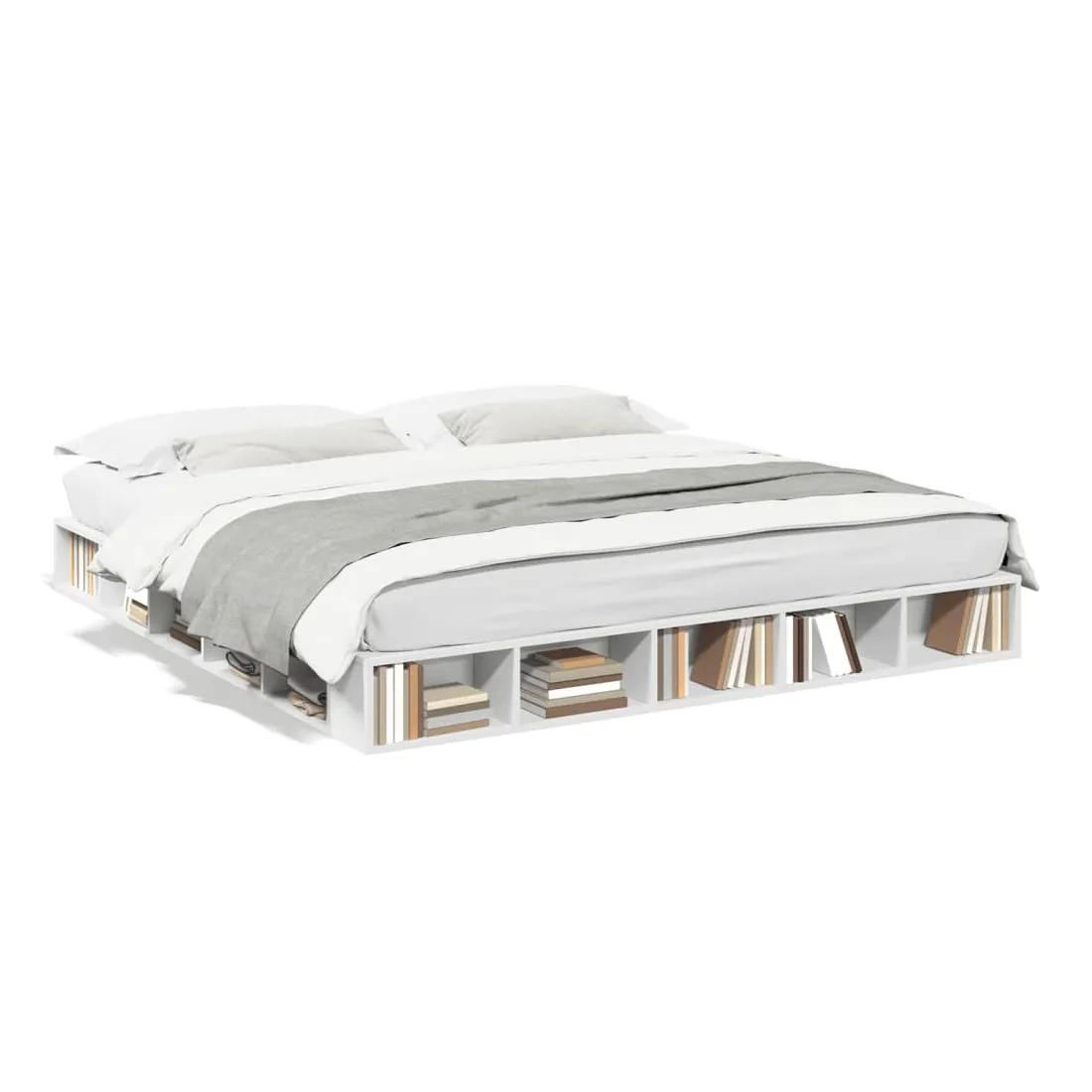 Obtenez une meilleure nuit de sommeil reposante grâce à ce cadre de lit ! Il est un supplément accueillant à toute chambre à coucher. Matériau durable : le cadre de lit est fabriquée en bois d'ingénierie. Le bois d'ingénierie est d'une qualité exceptionnelle avec une surface lisse et présente également de la résistance, de la stabilité et de la résistance à l'humidité.Lattes pour un soutien optimal : le cadre de lit est complété par des lattes pour offrir un soutien et une respirabilité essentiels à votre matelas.Fonction de rangement : ce cadre de lit offre des compartiments ouverts pour garder vos magazines, livres, jouets et autres petits objets bien organisés. Bon à savoir :Un matelas n'est pas inclus avec ce lit. Nous offrons une sélection variée de matelas. Vous pouvez consulter notre boutique pour trouver un matelas assorti.
