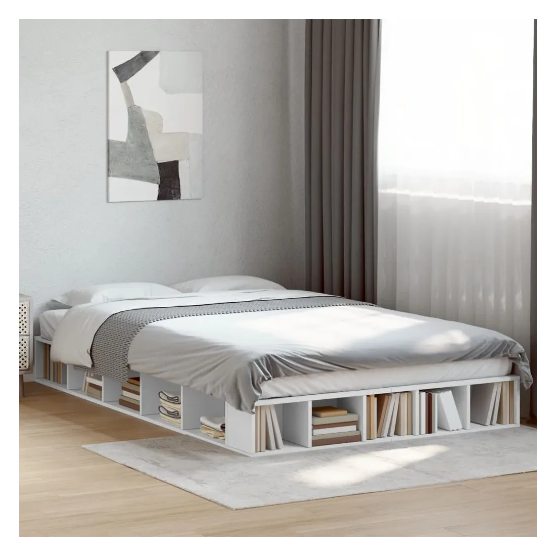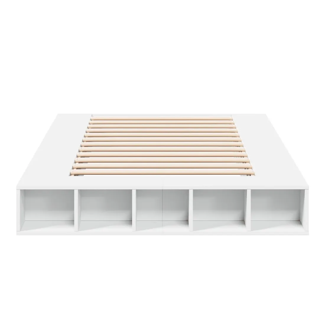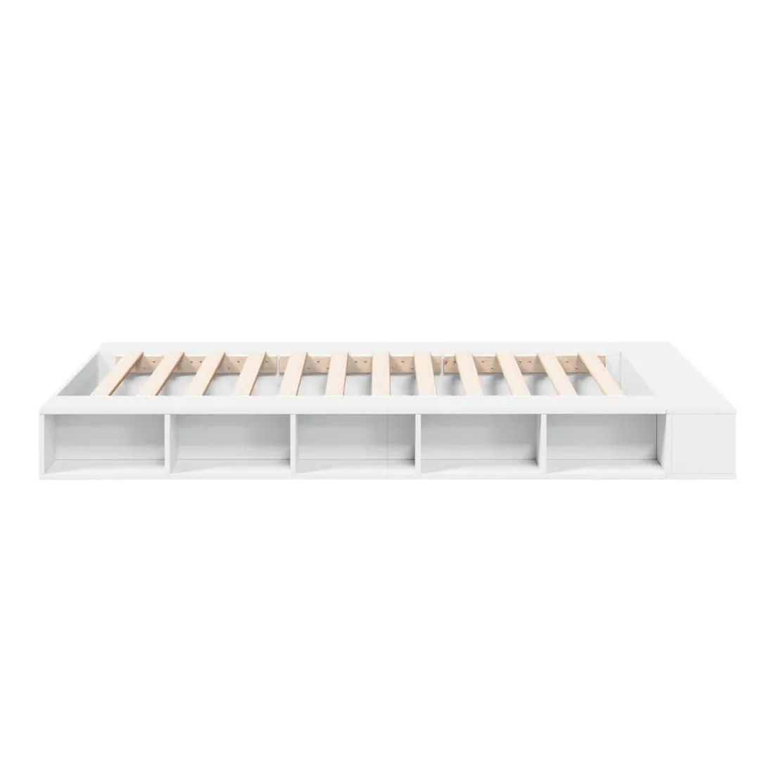 Obtenez une meilleure nuit de sommeil reposante grâce à ce cadre de lit ! Il est un supplément accueillant à toute chambre à coucher. Matériau durable : le cadre de lit est fabriquée en bois d'ingénierie. Le bois d'ingénierie est d'une qualité exceptionnelle avec une surface lisse et présente également de la résistance, de la stabilité et de la résistance à l'humidité.Lattes pour un soutien optimal : le cadre de lit est complété par des lattes pour offrir un soutien et une respirabilité essentiels à votre matelas.Fonction de rangement : ce cadre de lit offre des compartiments ouverts pour garder vos magazines, livres, jouets et autres petits objets bien organisés. Bon à savoir :Un matelas n'est pas inclus avec ce lit. Nous offrons une sélection variée de matelas. Vous pouvez consulter notre boutique pour trouver un matelas assorti.