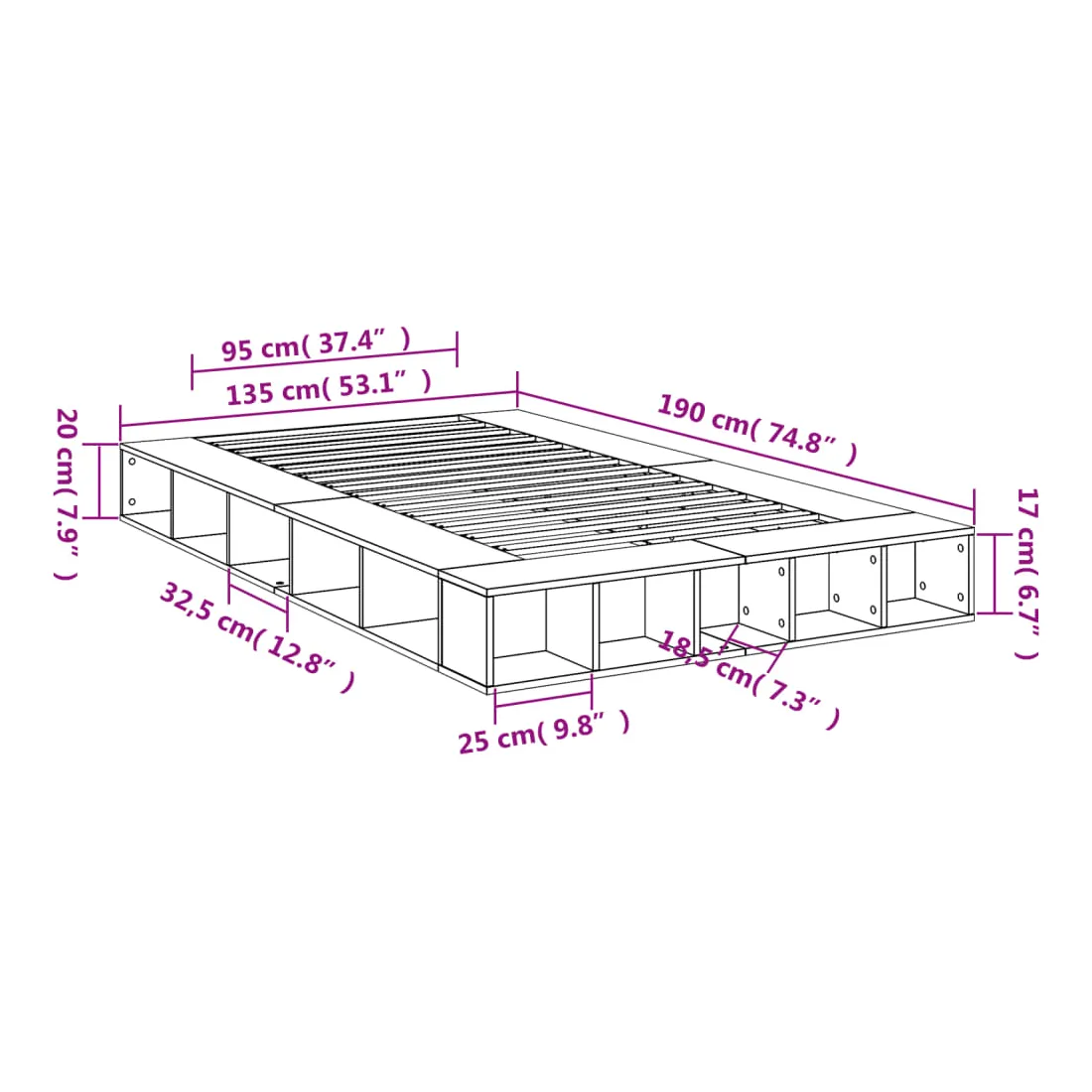 vidaXLObtenez une meilleure nuit de sommeil reposante grâce à ce cadre de lit ! Il est un supplément accueillant à toute chambre à coucher. Matériau durable : le cadre de lit est fabriquée en bois d'ingénierie. Le bois d'ingénierie est d'une qualité exceptionnelle avec une surface lisse et présente également de la résistance, de la stabilité et de la résistance à l'humidité.Lattes pour un soutien optimal : le cadre de lit est complété par des lattes pour offrir un soutien et une respirabilité essentiels à votre matelas.Fonction de rangement : ce cadre de lit offre des compartiments ouverts pour garder vos magazines, livres, jouets et autres petits objets bien organisés. Bon à savoir :Un matelas n'est pas inclus avec ce lit. Nous offrons une sélection variée de matelas. Vous pouvez consulter notre boutique pour trouver un matelas assorti.