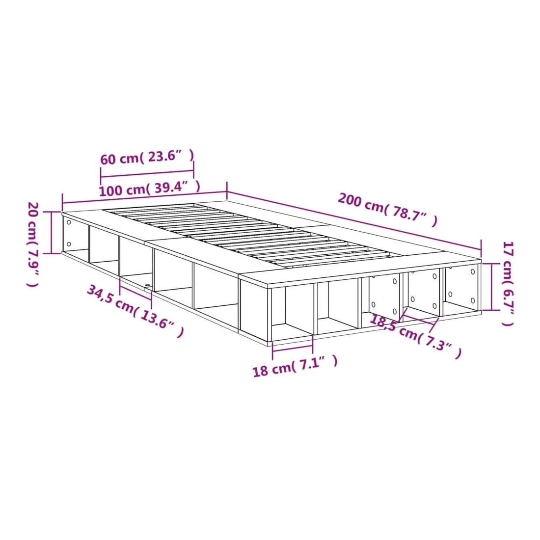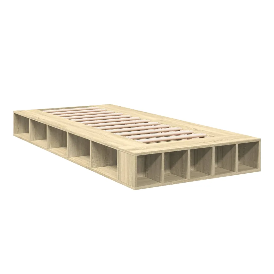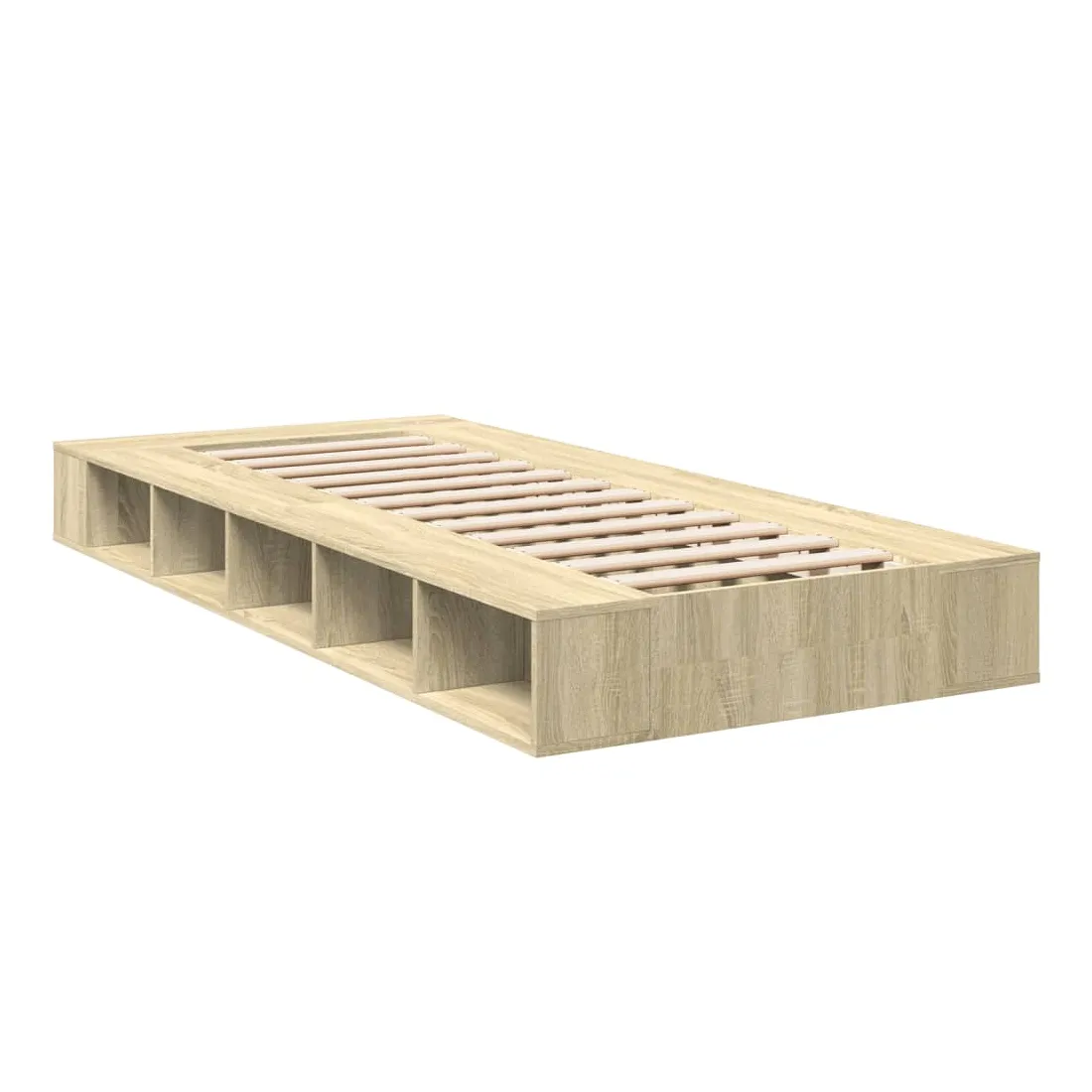 Obtenez une meilleure nuit de sommeil reposante grâce à ce cadre de lit ! Il est un supplément accueillant à toute chambre à coucher. Matériau durable : le cadre de lit est fabriquée en bois d'ingénierie. Le bois d'ingénierie est d'une qualité exceptionnelle avec une surface lisse et présente également de la résistance, de la stabilité et de la résistance à l'humidité.Lattes pour un soutien optimal : le cadre de lit est complété par des lattes pour offrir un soutien et une respirabilité essentiels à votre matelas.Fonction de rangement : ce cadre de lit offre des compartiments ouverts pour garder vos magazines, livres, jouets et autres petits objets bien organisés. Bon à savoir :Un matelas n'est pas inclus avec ce lit. Nous offrons une sélection variée de matelas. Vous pouvez consulter notre boutique pour trouver un matelas assorti.