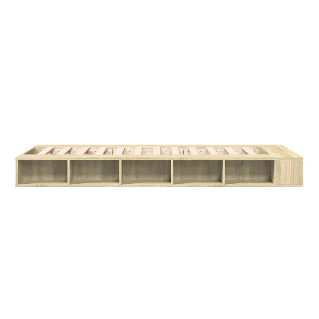 Obtenez une meilleure nuit de sommeil reposante grâce à ce cadre de lit ! Il est un supplément accueillant à toute chambre à coucher. Matériau durable : le cadre de lit est fabriquée en bois d'ingénierie. Le bois d'ingénierie est d'une qualité exceptionnelle avec une surface lisse et présente également de la résistance, de la stabilité et de la résistance à l'humidité.Lattes pour un soutien optimal : le cadre de lit est complété par des lattes pour offrir un soutien et une respirabilité essentiels à votre matelas.Fonction de rangement : ce cadre de lit offre des compartiments ouverts pour garder vos magazines, livres, jouets et autres petits objets bien organisés. Bon à savoir :Un matelas n'est pas inclus avec ce lit. Nous offrons une sélection variée de matelas. Vous pouvez consulter notre boutique pour trouver un matelas assorti.