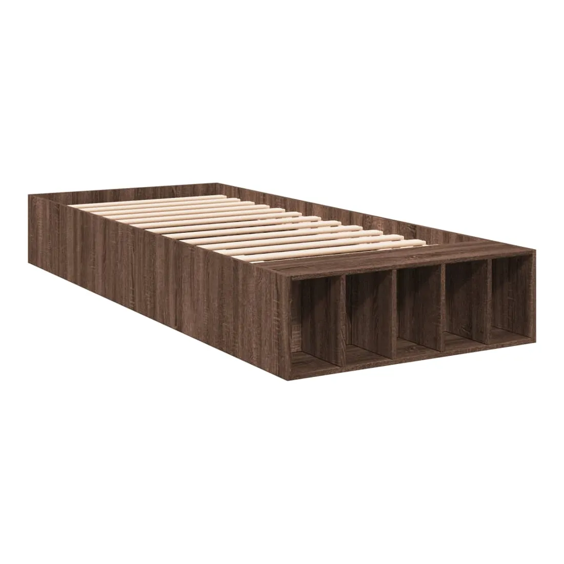 Ajoutez une touche moderne à votre chambre à coucher avec ce cadre de lit ! Il apportera une touche pratique et décorative à votre espace de vie. Matériau durable : le cadre de lit est fabriquée en bois d'ingénierie. Le bois d'ingénierie est d'une qualité exceptionnelle avec une surface lisse et présente également de la résistance, de la stabilité et de la résistance à l'humidité.Lattes robustes : les lattes de contreplaqué assurent une bonne répartition du poids, garantissant que le matelas reste en place à chaque torsion de votre corps pendant le sommeil.Fonction de rangement : les compartiments de lit inclus offrent un grand espace de rangement pour ranger vos articles essentiels, gardant votre chambre propre et bien rangée. Bon à savoir :Un matelas n'est pas inclus avec ce lit. Nous offrons une sélection variée de matelas. Vous pouvez consulter notre boutique pour trouver un matelas assorti.