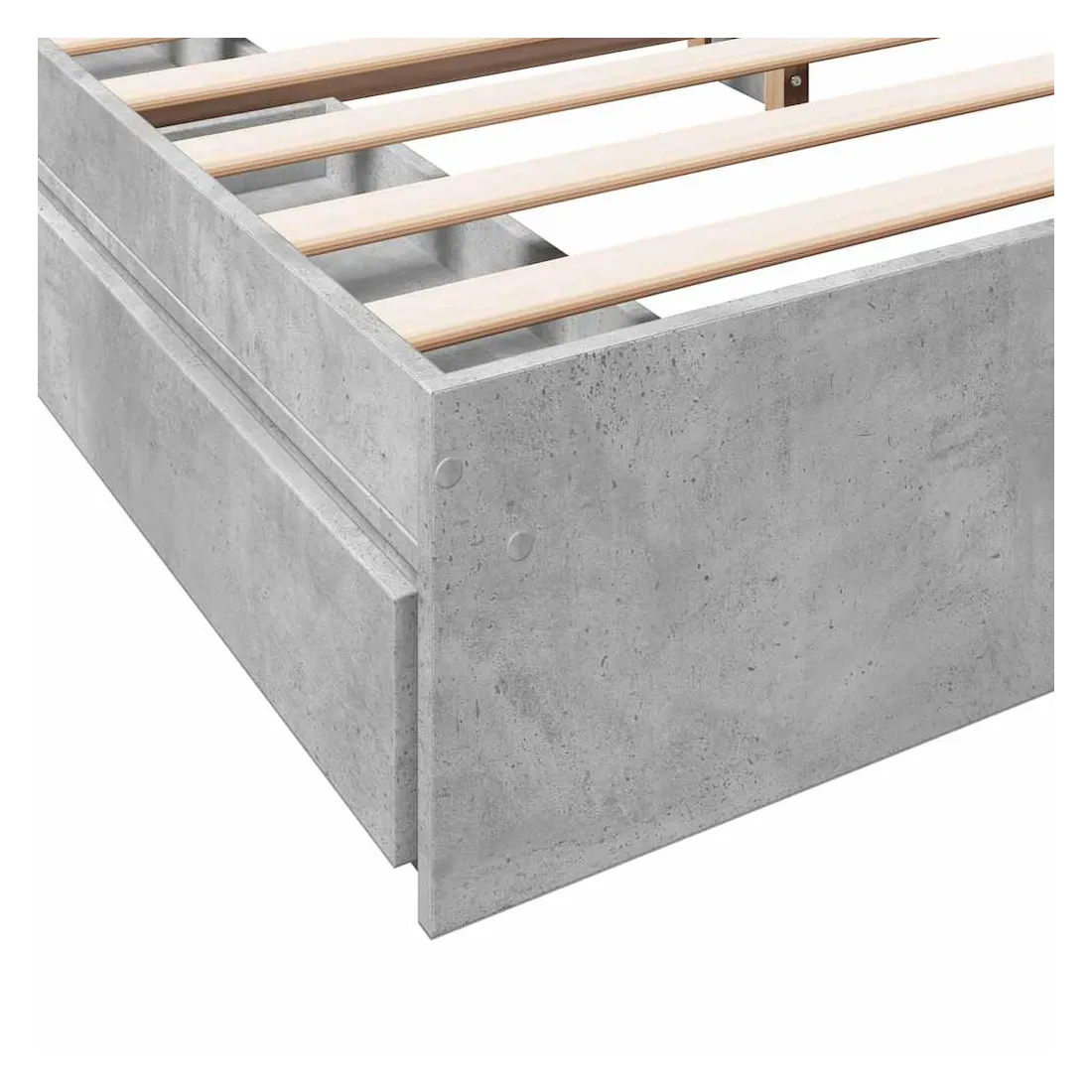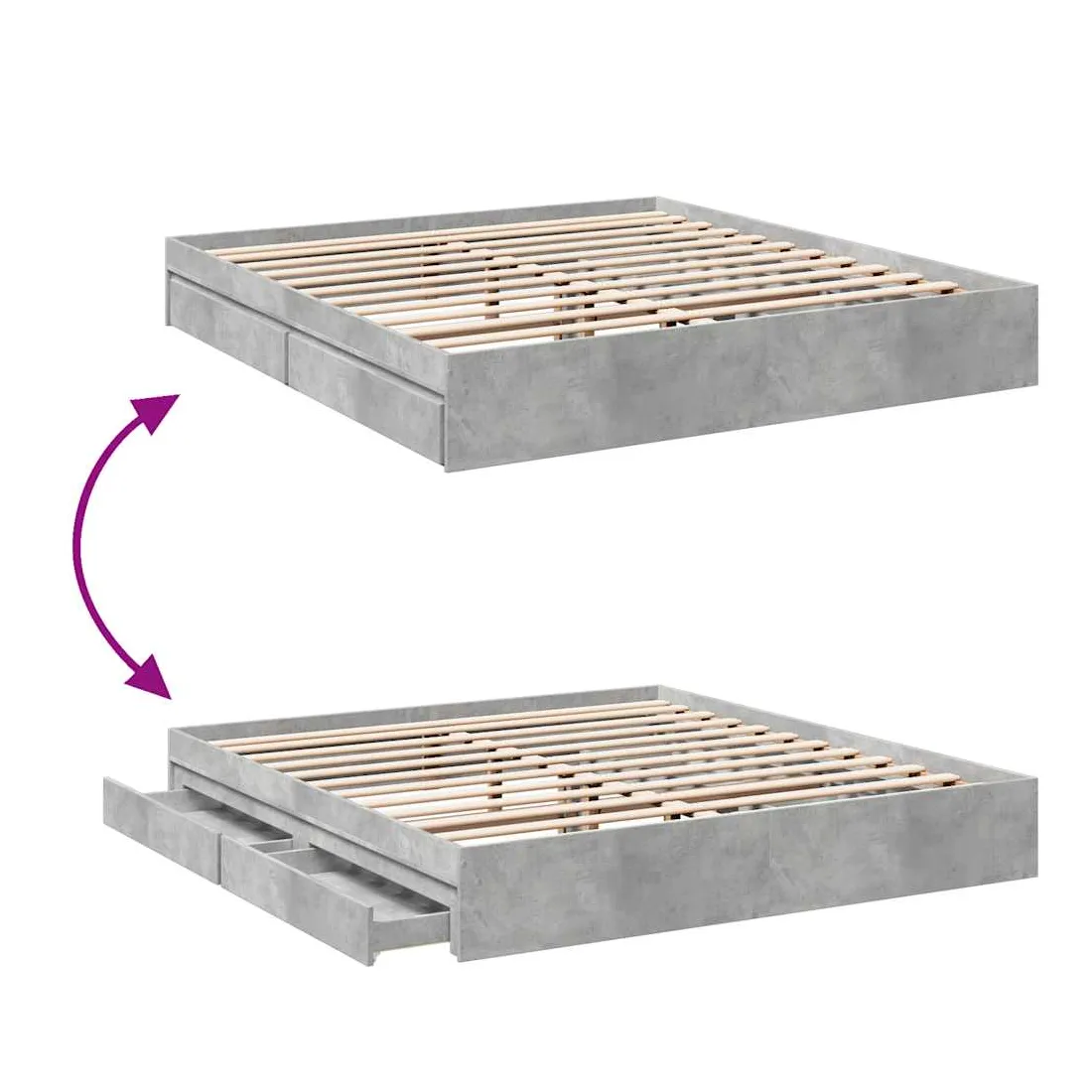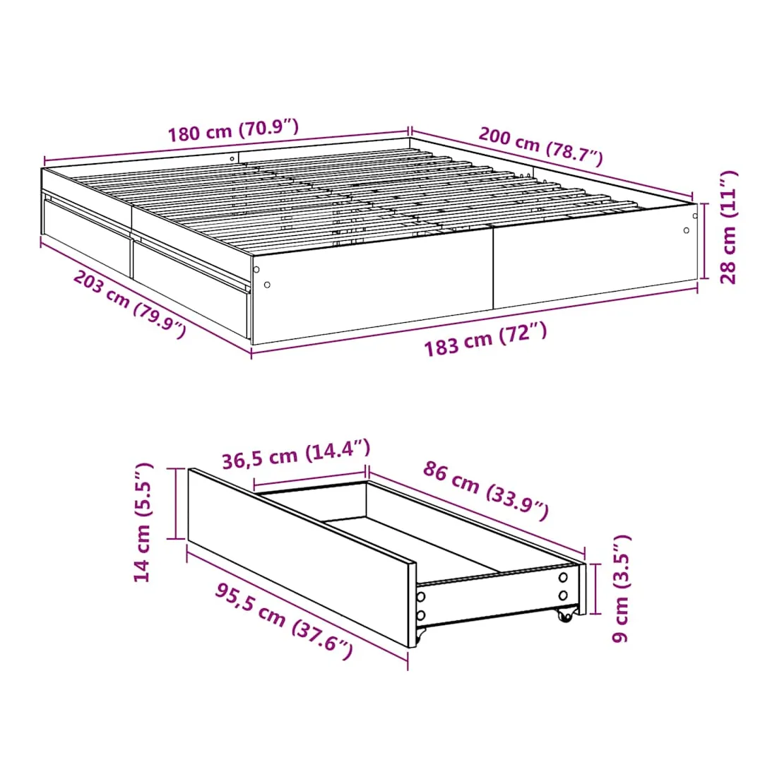 Ajoutez une touche moderne à votre chambre à coucher avec ce cadre de lit avec tiroirs ! Il apportera une touche pratique et décorative à votre espace de vie. Matériau durable : le cadre de lit est fabriquée en bois d'ingénierie. Le bois d'ingénierie est d'une qualité exceptionnelle avec une surface lisse et présente également de la résistance, de la stabilité et de la résistance à l'humidité.Lattes robustes : les lattes de contreplaqué assurent une bonne répartition du poids, garantissant que le matelas reste en place à chaque torsion de votre corps pendant le sommeil.Fonction de rangement : les tiroirs de lit inclus offrent suffisamment d'espace de rangement pour ranger vos articles essentiels, gardant votre pièce propre et bien rangée. Bon à savoir :Un matelas n'est pas inclus avec ce lit. Nous offrons une sélection variée de matelas. Vous pouvez consulter notre boutique pour trouver un matelas assorti.