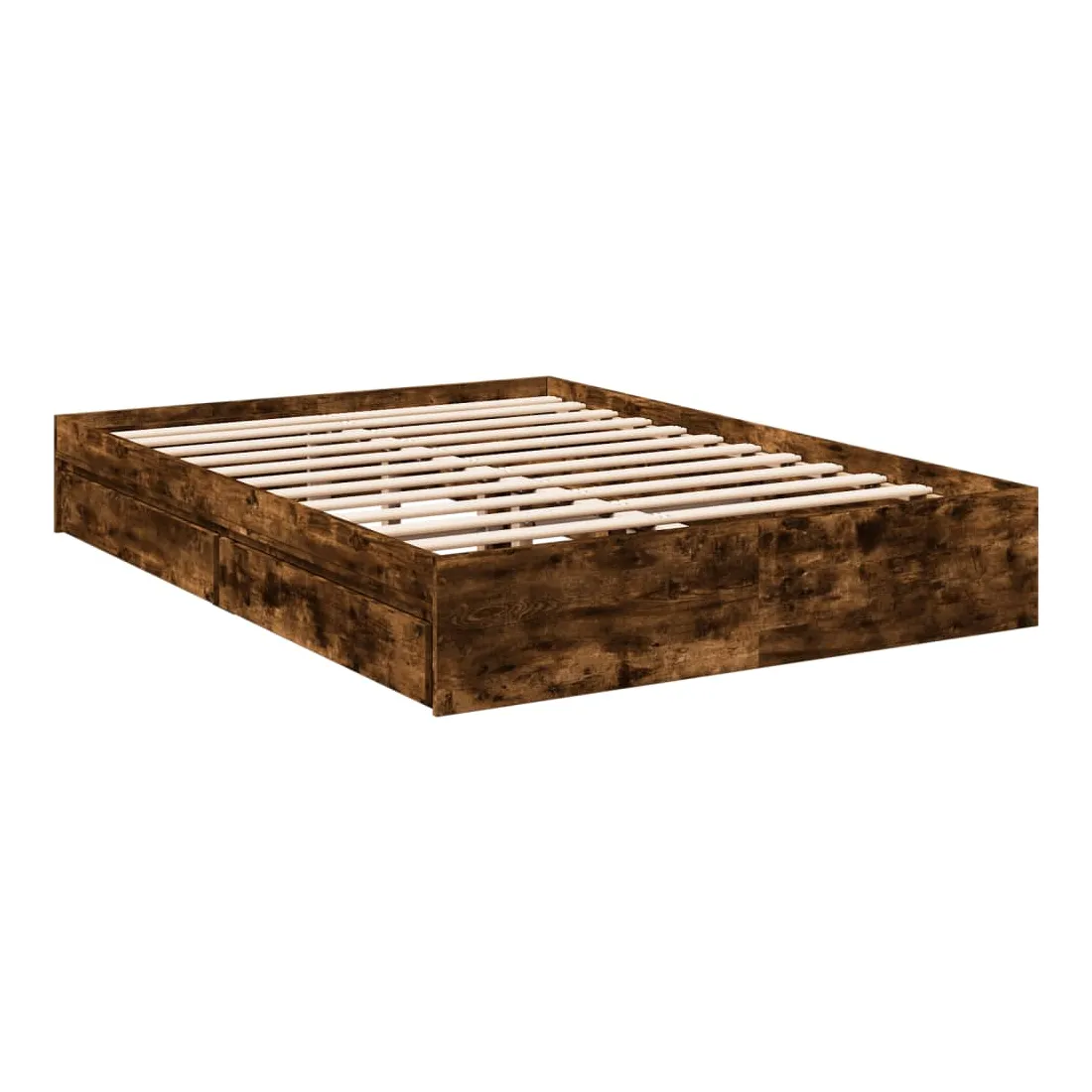 Cadre de lit avec tiroirs sans matelas chêne fumé 140x190 cm
