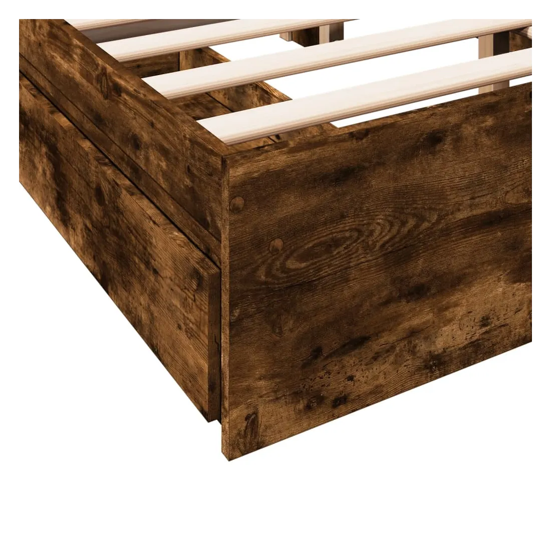 Ajoutez une touche moderne à votre chambre à coucher avec ce cadre de lit avec tiroirs ! Il apportera une touche pratique et décorative à votre espace de vie. Matériau durable : le cadre de lit est fabriquée en bois d'ingénierie. Le bois d'ingénierie est d'une qualité exceptionnelle avec une surface lisse et présente également de la résistance, de la stabilité et de la résistance à l'humidité.Lattes robustes : les lattes de contreplaqué assurent une bonne répartition du poids, garantissant que le matelas reste en place à chaque torsion de votre corps pendant le sommeil.Fonction de rangement : les tiroirs de lit inclus offrent suffisamment d'espace de rangement pour ranger vos articles essentiels, gardant votre pièce propre et bien rangée. Bon à savoir :Un matelas n'est pas inclus avec ce lit. Nous offrons une sélection variée de matelas. Vous pouvez consulter notre boutique pour trouver un matelas assorti.