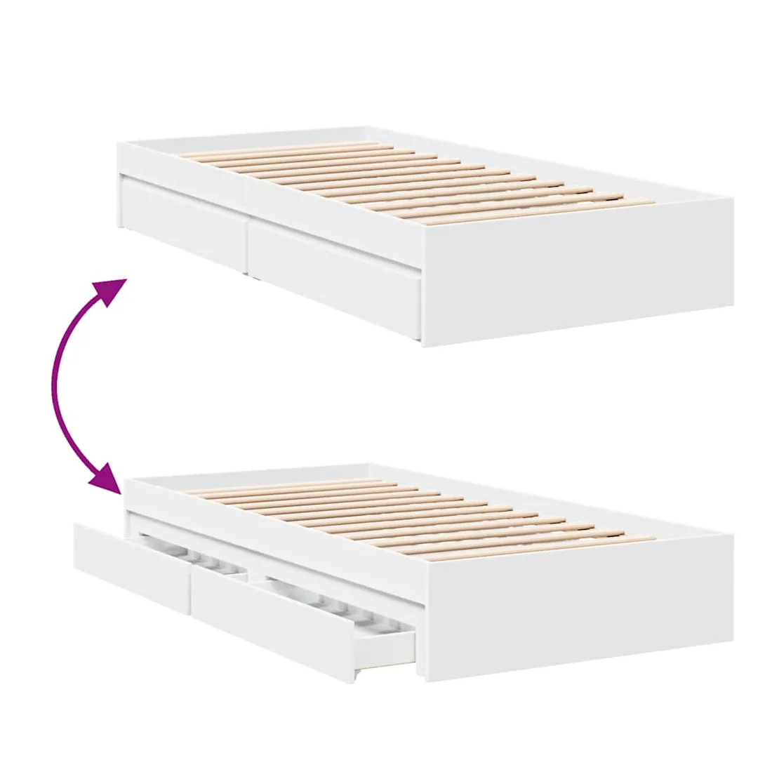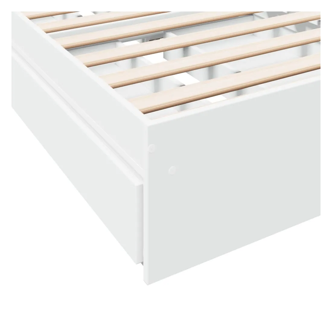 Ajoutez une touche moderne à votre chambre à coucher avec ce cadre de lit avec tiroirs ! Il apportera une touche pratique et décorative à votre espace de vie. Matériau durable : le cadre de lit est fabriquée en bois d'ingénierie. Le bois d'ingénierie est d'une qualité exceptionnelle avec une surface lisse et présente également de la résistance, de la stabilité et de la résistance à l'humidité.Lattes robustes : les lattes de contreplaqué assurent une bonne répartition du poids, garantissant que le matelas reste en place à chaque torsion de votre corps pendant le sommeil.Fonction de rangement : les tiroirs de lit inclus offrent suffisamment d'espace de rangement pour ranger vos articles essentiels, gardant votre pièce propre et bien rangée. Bon à savoir :Un matelas n'est pas inclus avec ce lit. Nous offrons une sélection variée de matelas. Vous pouvez consulter notre boutique pour trouver un matelas assorti.