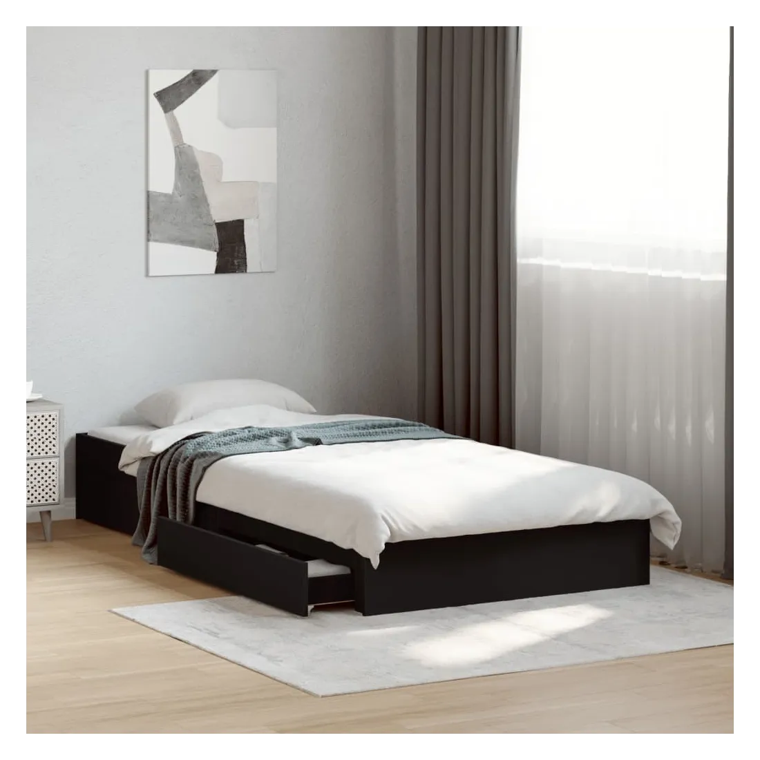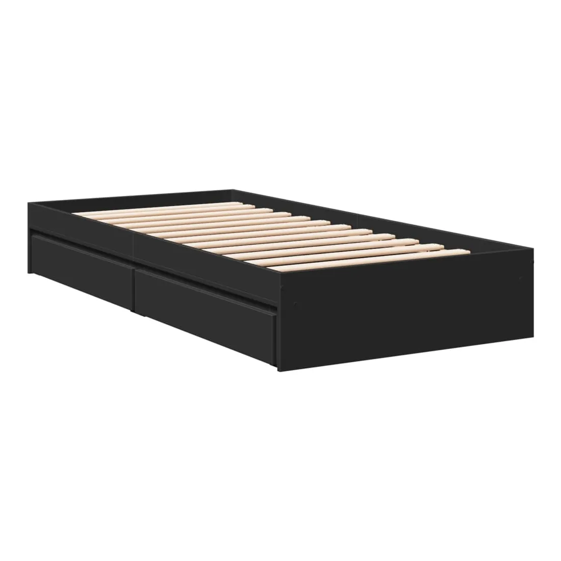 Ajoutez une touche moderne à votre chambre à coucher avec ce cadre de lit avec tiroirs ! Il apportera une touche pratique et décorative à votre espace de vie. Matériau durable : le cadre de lit est fabriquée en bois d'ingénierie. Le bois d'ingénierie est d'une qualité exceptionnelle avec une surface lisse et présente également de la résistance, de la stabilité et de la résistance à l'humidité.Lattes robustes : les lattes de contreplaqué assurent une bonne répartition du poids, garantissant que le matelas reste en place à chaque torsion de votre corps pendant le sommeil.Fonction de rangement : les tiroirs de lit inclus offrent suffisamment d'espace de rangement pour ranger vos articles essentiels, gardant votre pièce propre et bien rangée. Bon à savoir :Un matelas n'est pas inclus avec ce lit. Nous offrons une sélection variée de matelas. Vous pouvez consulter notre boutique pour trouver un matelas assorti.
