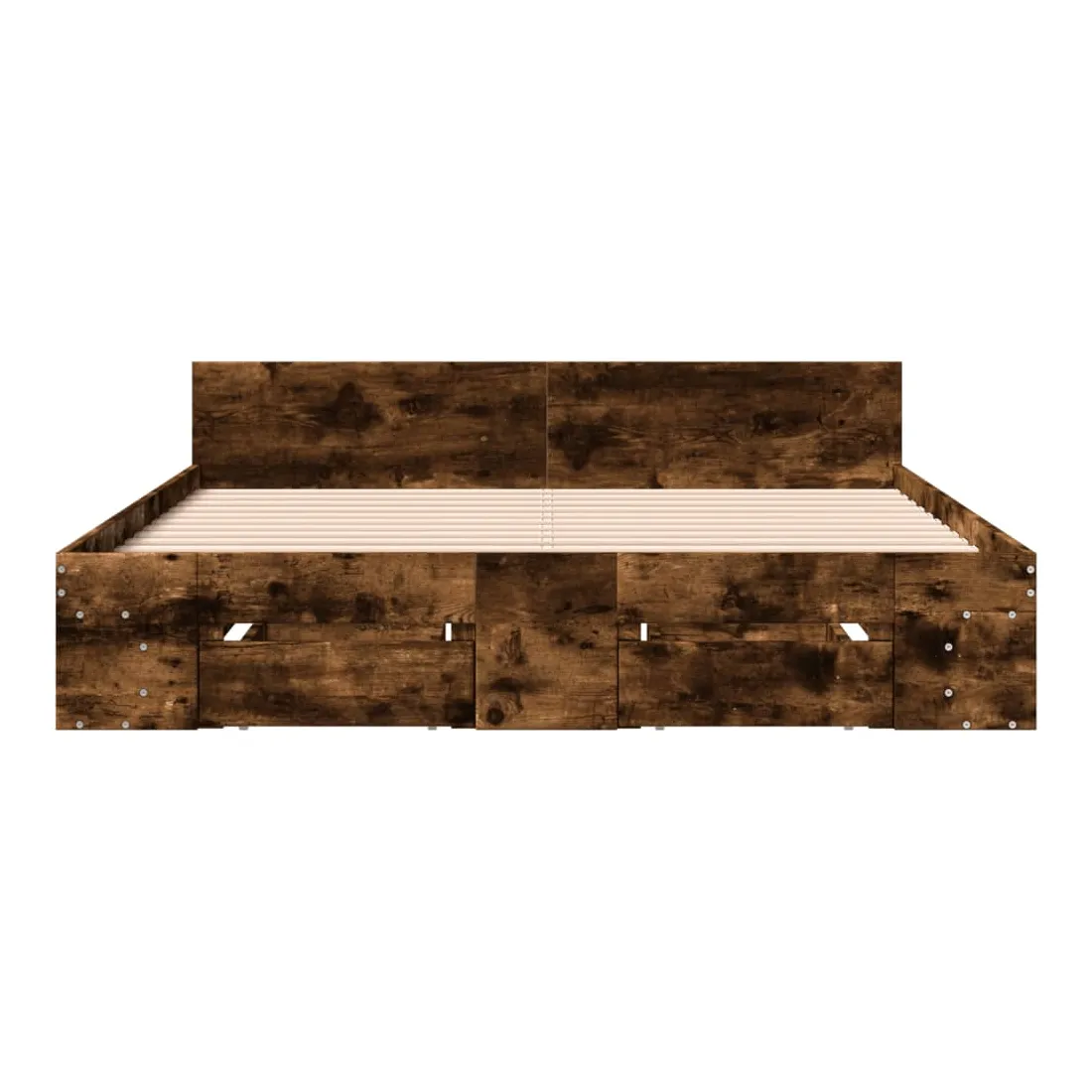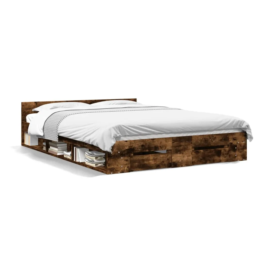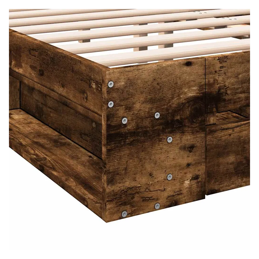 Ajoutez une touche moderne à votre chambre à coucher avec ce cadre de lit avec tiroirs ! Il apportera une touche pratique et décorative à votre espace de vie. Matériau durable : le cadre de lit est fabriquée en bois d'ingénierie. Le bois d'ingénierie est d'une qualité exceptionnelle avec une surface lisse et présente également de la résistance, de la stabilité et de la résistance à l'humidité.Lattes robustes : les lattes de contreplaqué assurent une bonne répartition du poids, garantissant que le matelas reste en place à chaque torsion de votre corps pendant le sommeil.Fonction de rangement : les tiroirs de lit et les compartiments latéraux inclus offrent suffisamment d'espace de rangement pour ranger vos articles essentiels, gardant votre pièce propre et bien rangée. Bon à savoir :Un matelas n'est pas inclus avec ce lit. Nous offrons une sélection variée de matelas. Vous pouvez consulter notre boutique pour trouver un matelas assorti.